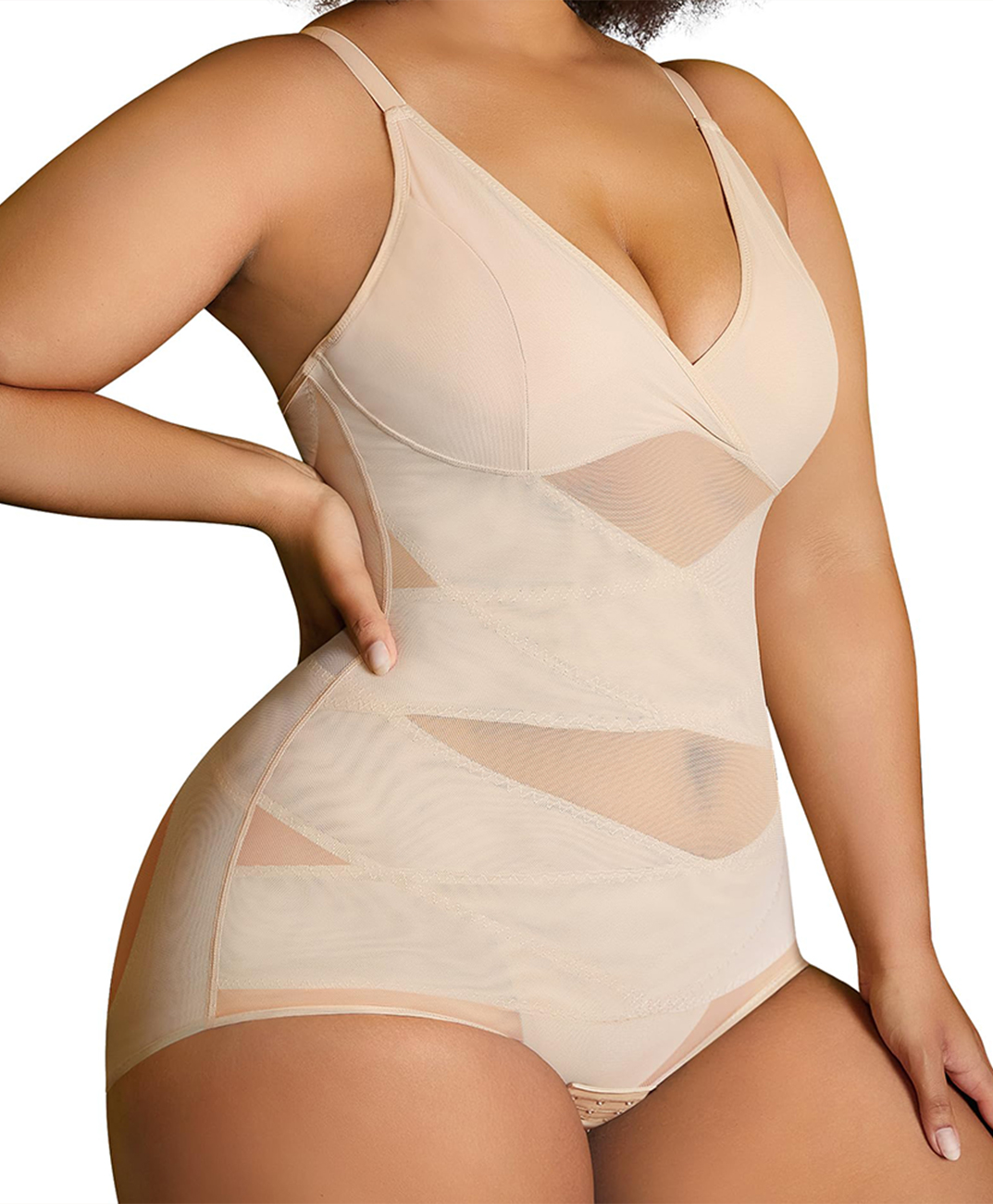 Plus Size Women V Neck Bodysuit with Removable Bra Pads