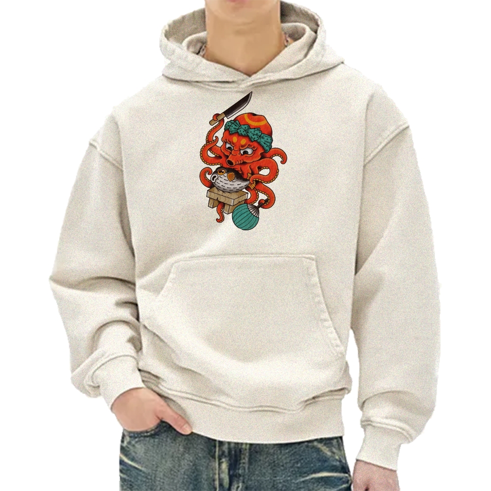 Osaka Drunken Octopus Front And Back Printing Vintage Washed Hoodie