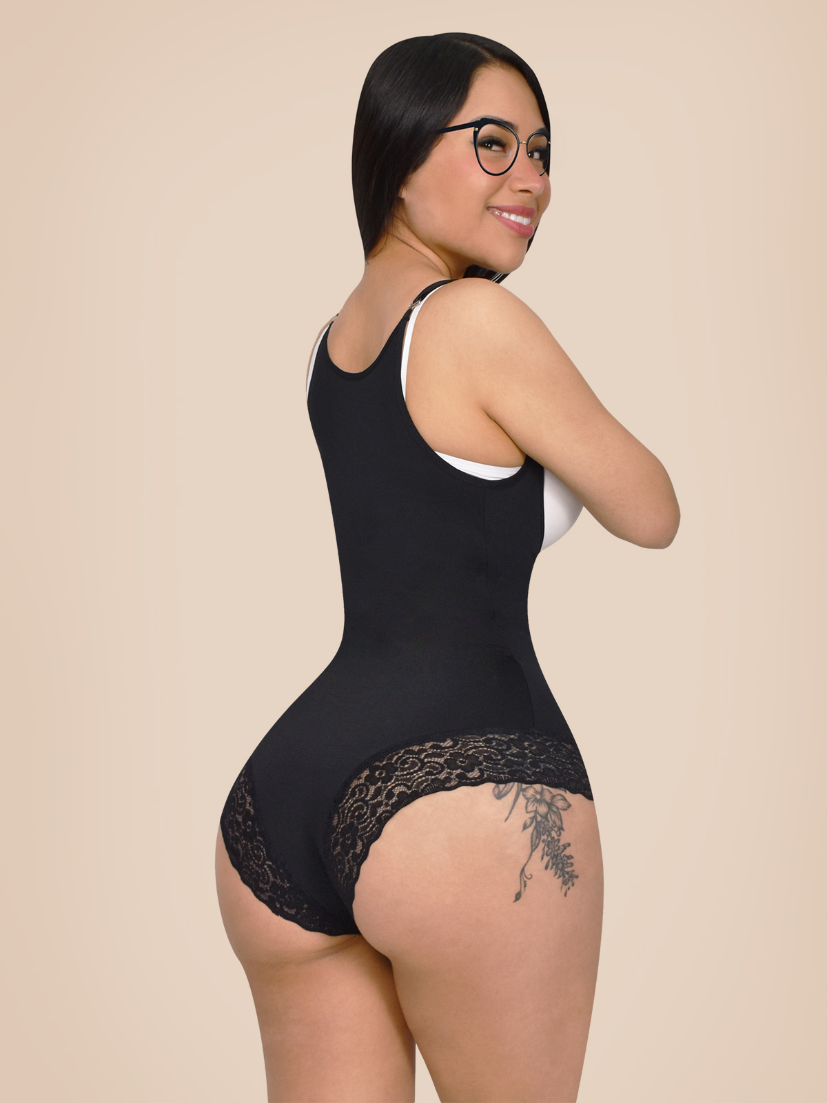 Suplex Premium Bodysuit (High pressure). Includes elastic lace at the bottom with silicone so it doesn't bend. Includes arm lace without silicone. Includes 2 snap adjustments in the intimate area and abdomen when closing. Includes chest-to-chest lycra regulator.