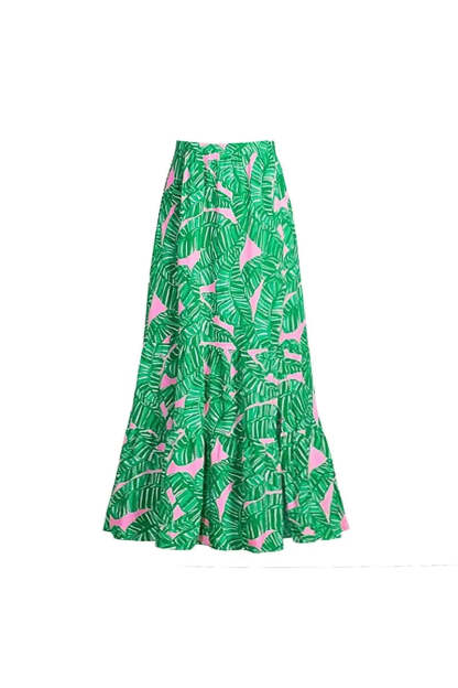 Fresh green botanical print with soft ruffle detailing two-piece styling options with either a skirt or shorts comfortable. sculpting fit with stretchy material coordinated design for mix-and-match looks.