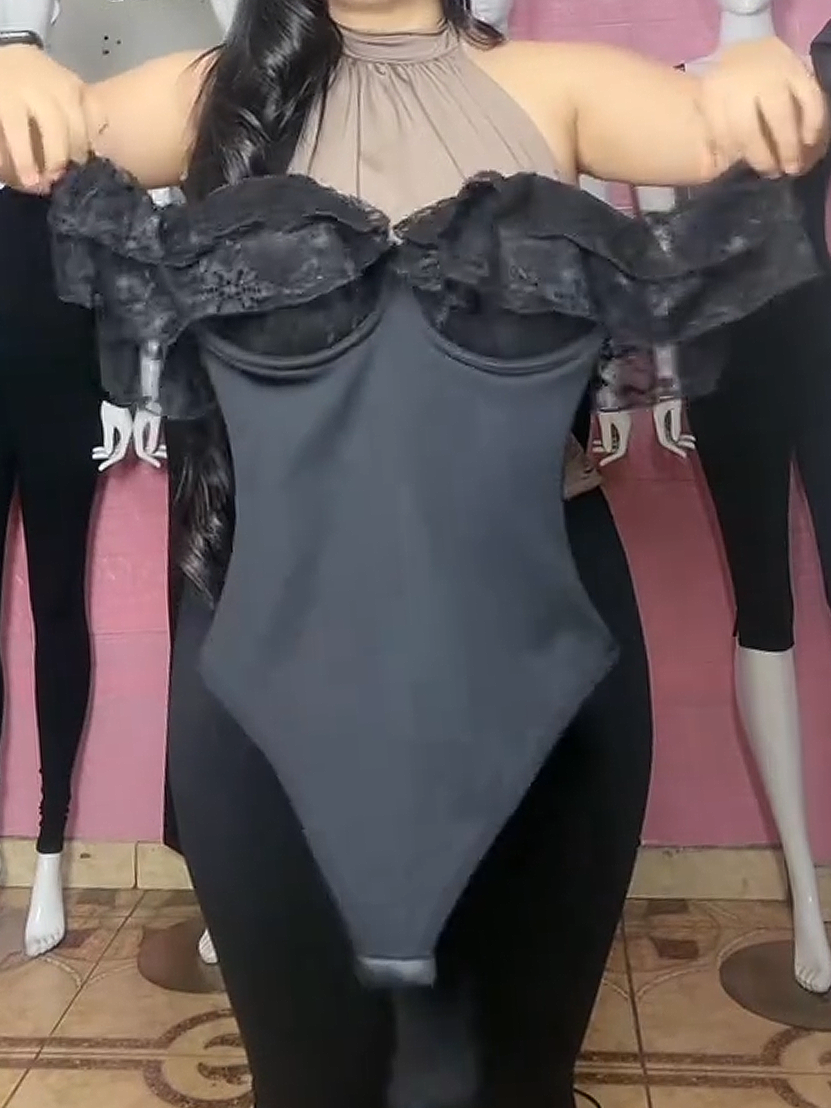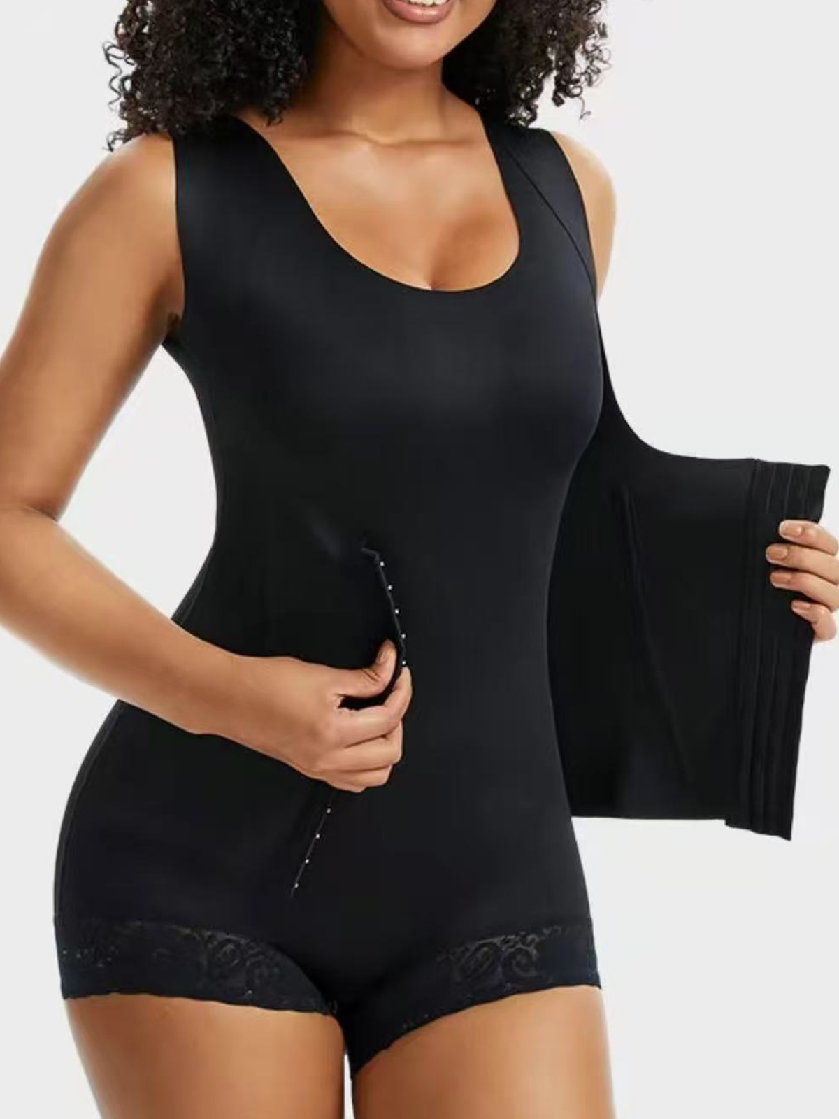 Triangle Shaped Bodysuit With Lace Up Design For Tummy Control