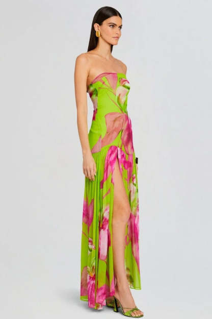Pam Printed Strapless Slit Maxi Dress