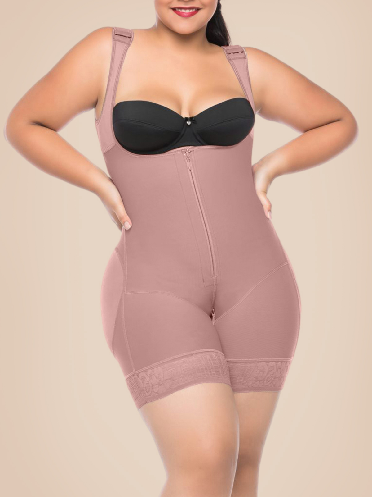 Compression Bodysuit Zipper Closure With Wide Adjustable Shoulder Straps Postpartum Tumt Control Shapewear For Women