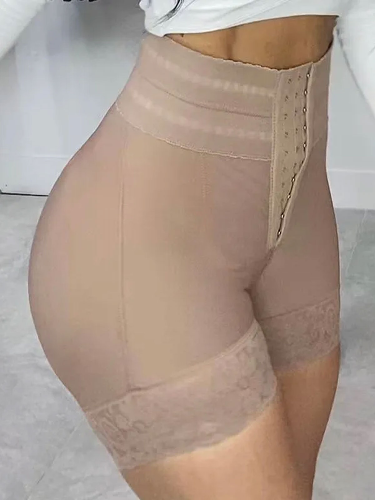 High Waisted Two-layer Lace Paneled Hip-lifting Shorts