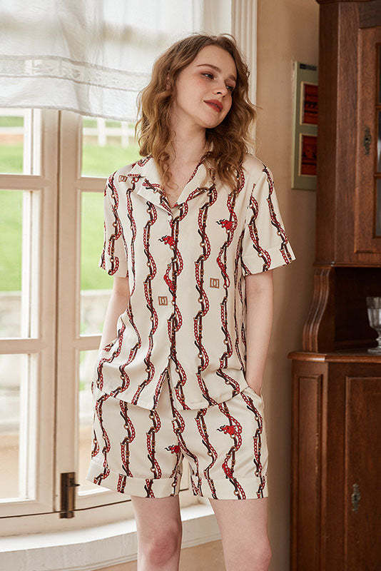 Dragon Head Chain Print Short-Sleeve Loungewear Set