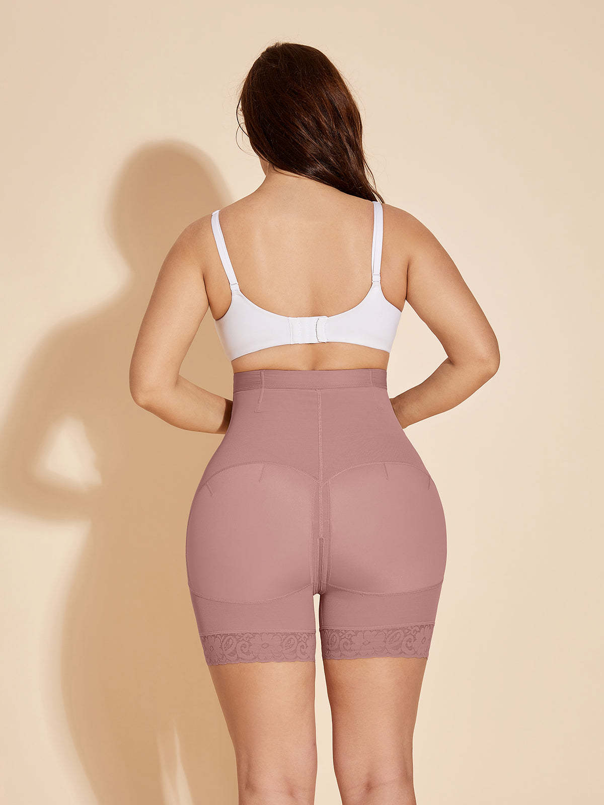 ChicCurve Butt Lifter Shaper Shorts with Zipper for Women - RosyBrown
