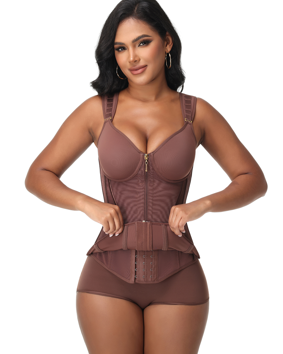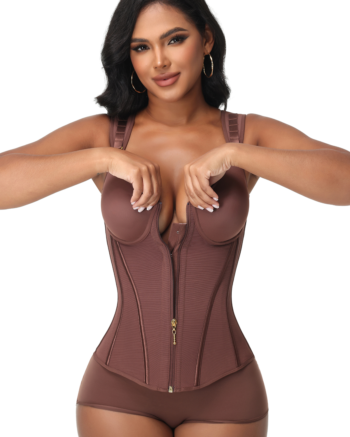 Double Compression Long Slimming Faja Waist Trainer Zipper Vest with Bra