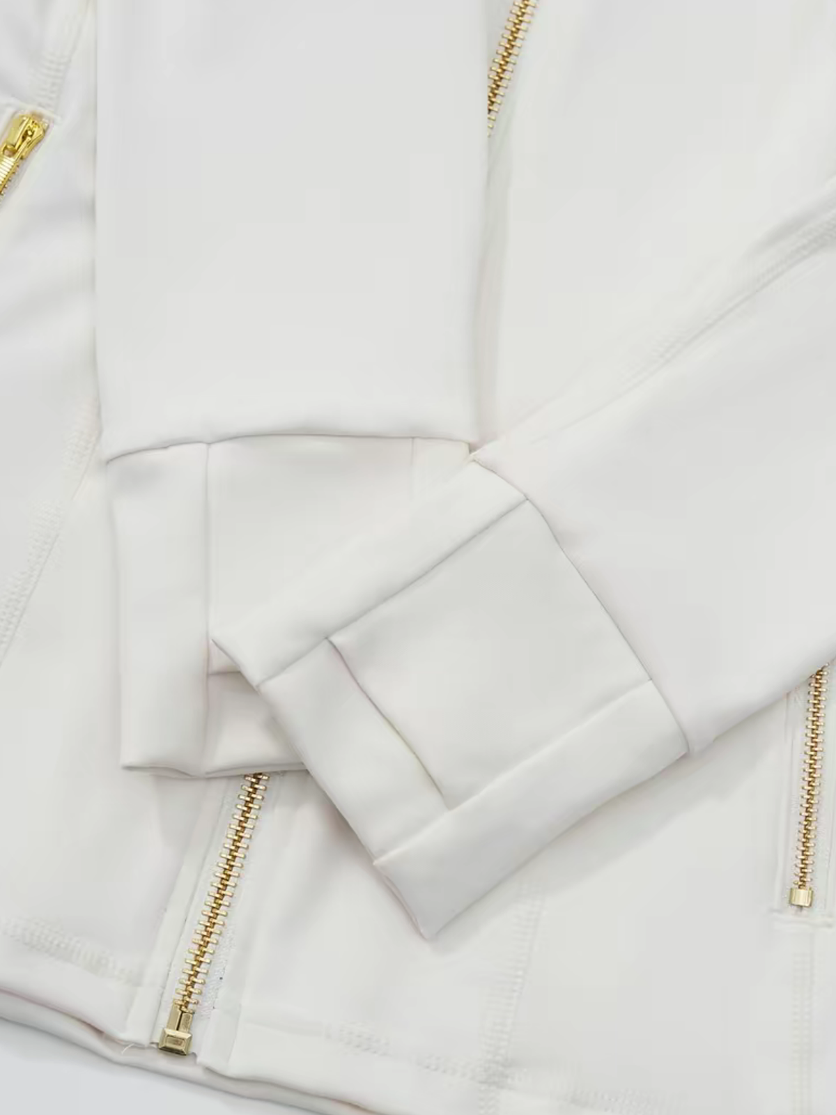 Make a statement with our signature golden zipper jacket, designed to add a subtle luxe accent to your casual lineup.