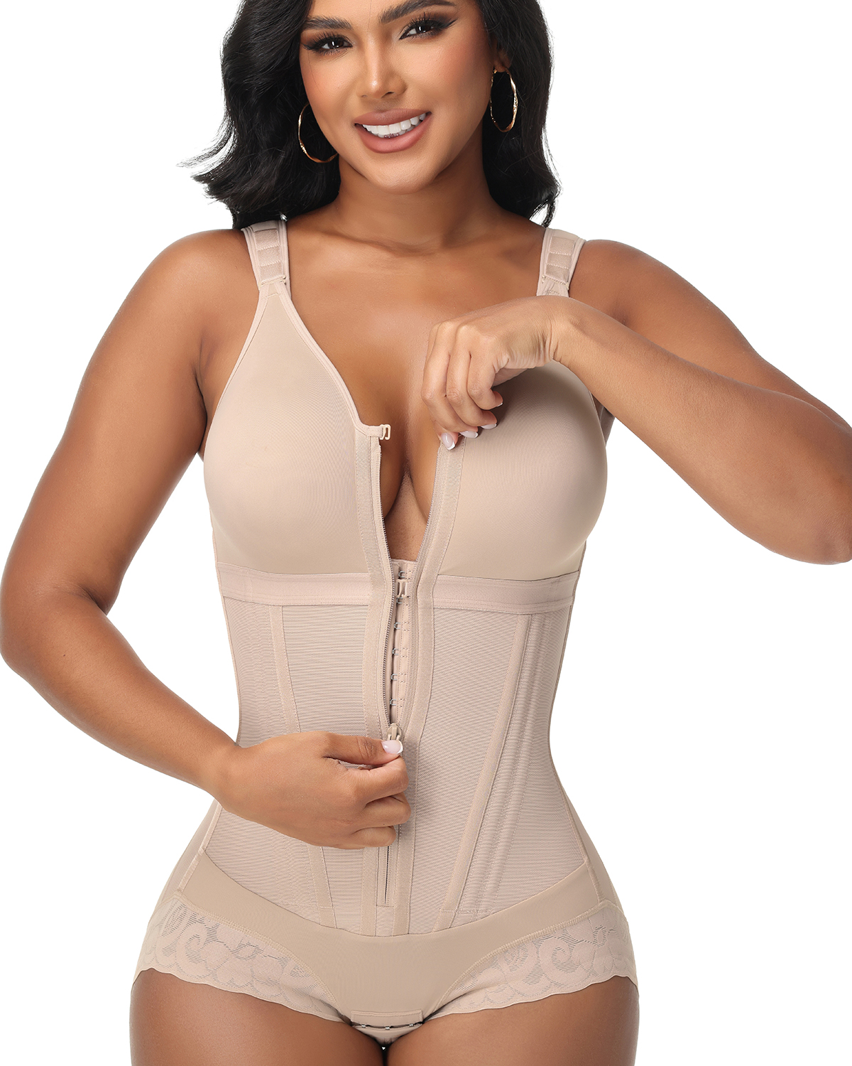 Double-Layer PowerMesh Hourglass Tummy Sculpt Zipper Bodysuit With Bra