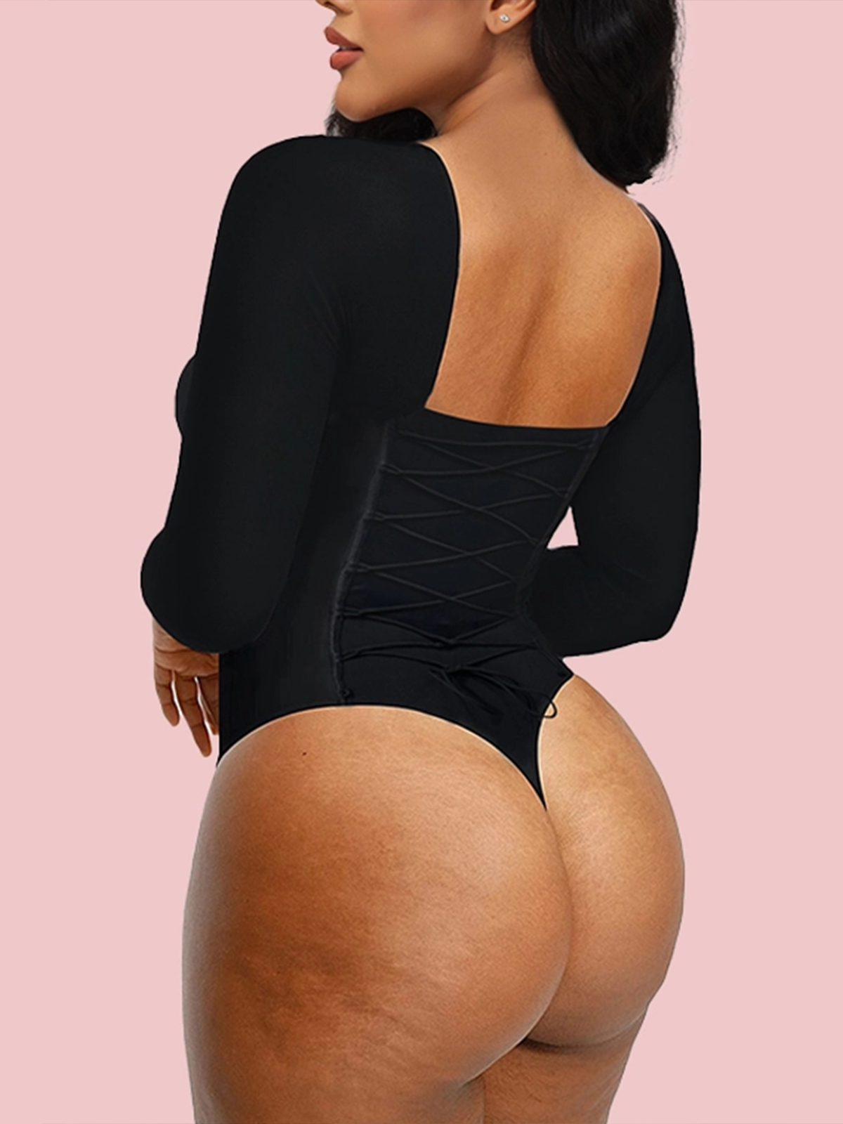 Long Sleeve Back Lace-up Thong Seamless Shapewear