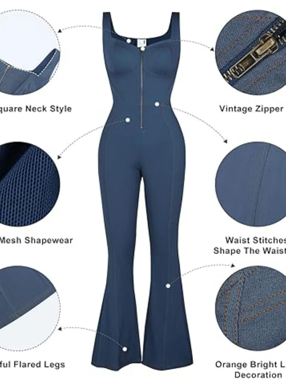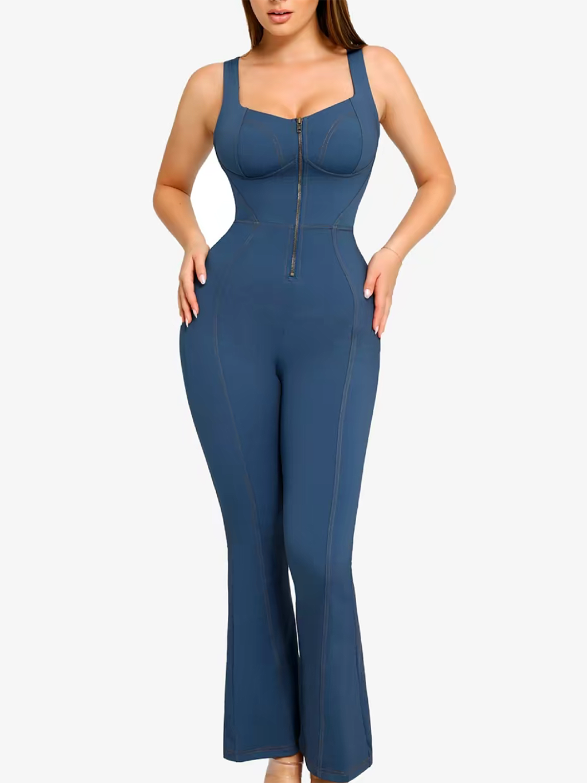 Women's Denim Bodysuit With Built In Shaping Function To Flatten The Tummy And Lift The Buttocks