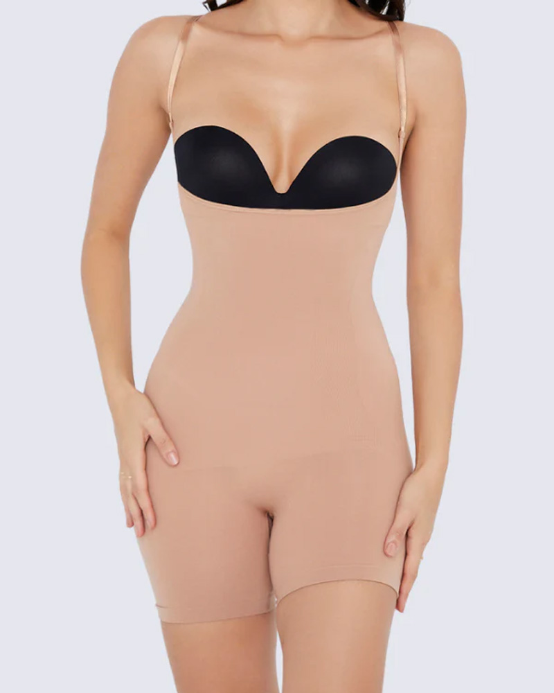 Women's Tummy Control Bodysuit Open Bust Shapewear Mid-Thigh Seamless Body Sculpting Bodysuit$42.00 USDDescribe your product
