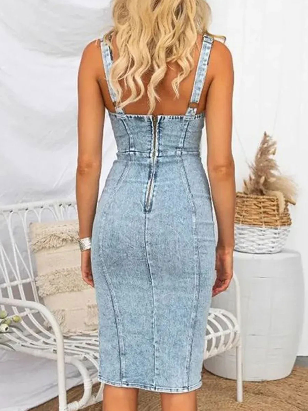 The dress combines modern fashion with timeless denim appeal, offering a look that’s both bold and versatile. Whether you're heading out for brunch, exploring the city, or dressing to impress in the evening, the Fits Like a Glove Denim Dress is your go-to piece for chic, body-hugging style.