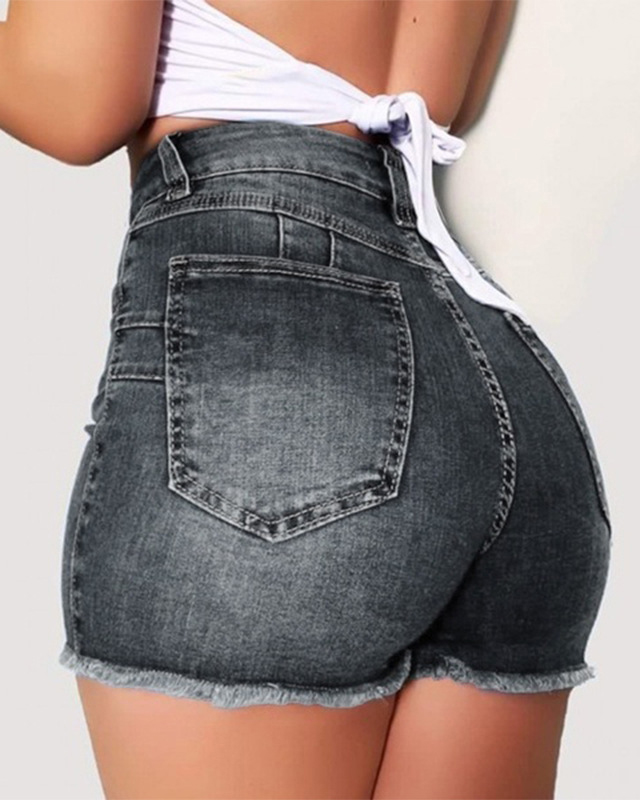 Women's Casual Frayed Hem Stretch Denim Shorts