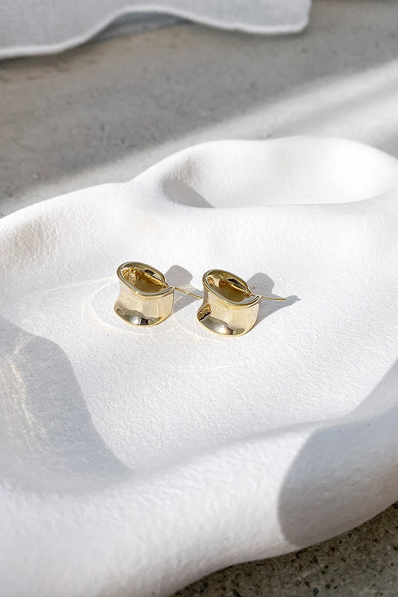 Beaten Metal Pearl Drop Hoops - Gold/Cream