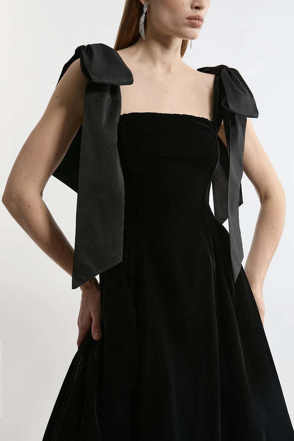 Velvet Strapless Bow Midi Dress