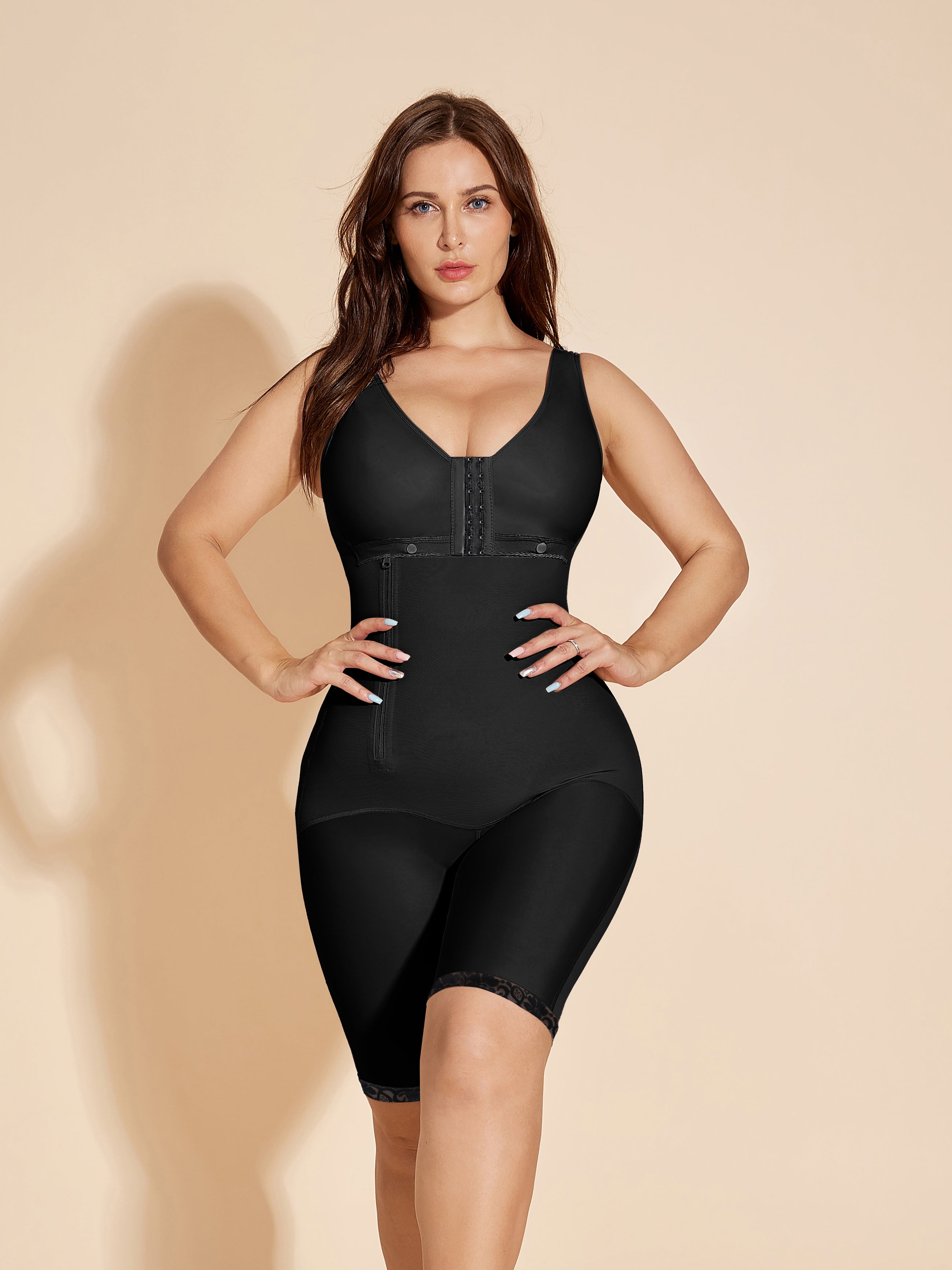 ChicCurve Hook-Eye Tummy Control Post-operative Shapewear with Side Zipper - Black