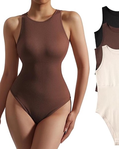 Ribbed Sleeveless Triangle Bodysuit