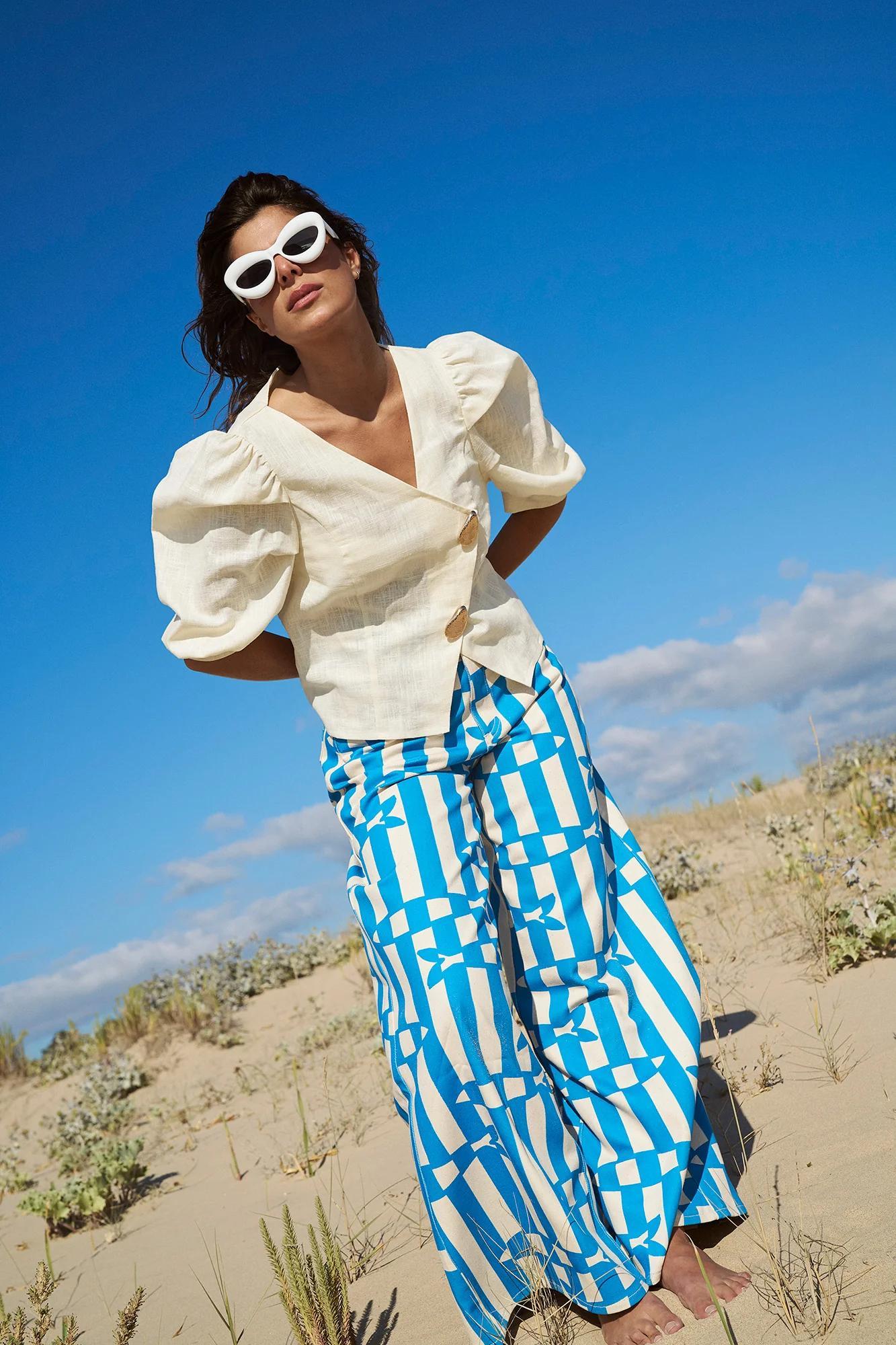 Fish Print Striped Wide Leg Pants