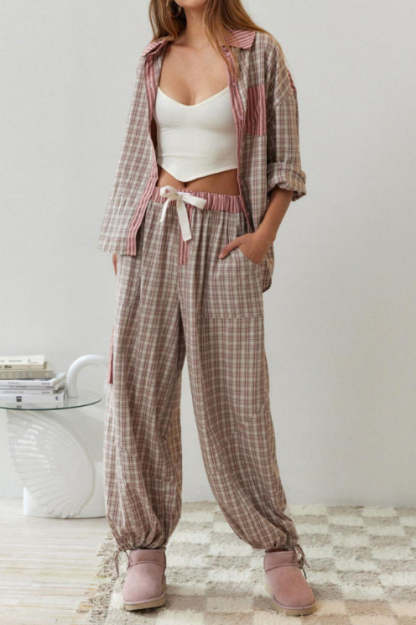 Made from soft. breathable fabric. this set combines a relaxed fit with timeless plaid patterns. offering both comfort and style for your daily home routine.