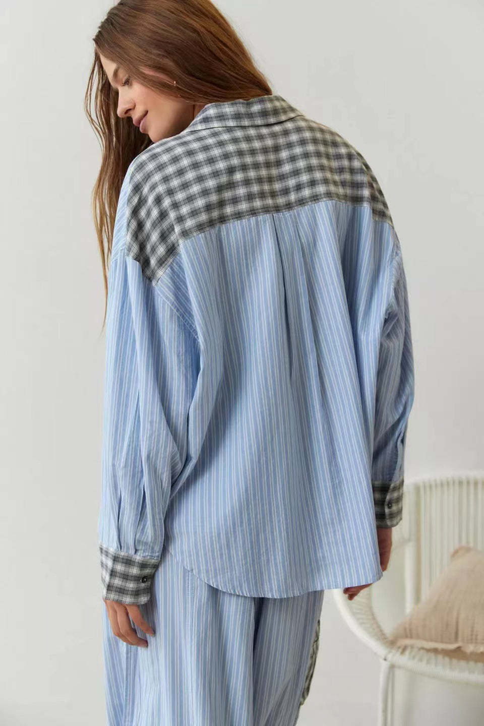 Relax in style with this cozy plaid pajama set. featuring a classic button-up shirt and matching long pants. Designed for ultimate comfort. it's perfect for lounging or a good night's sleep.