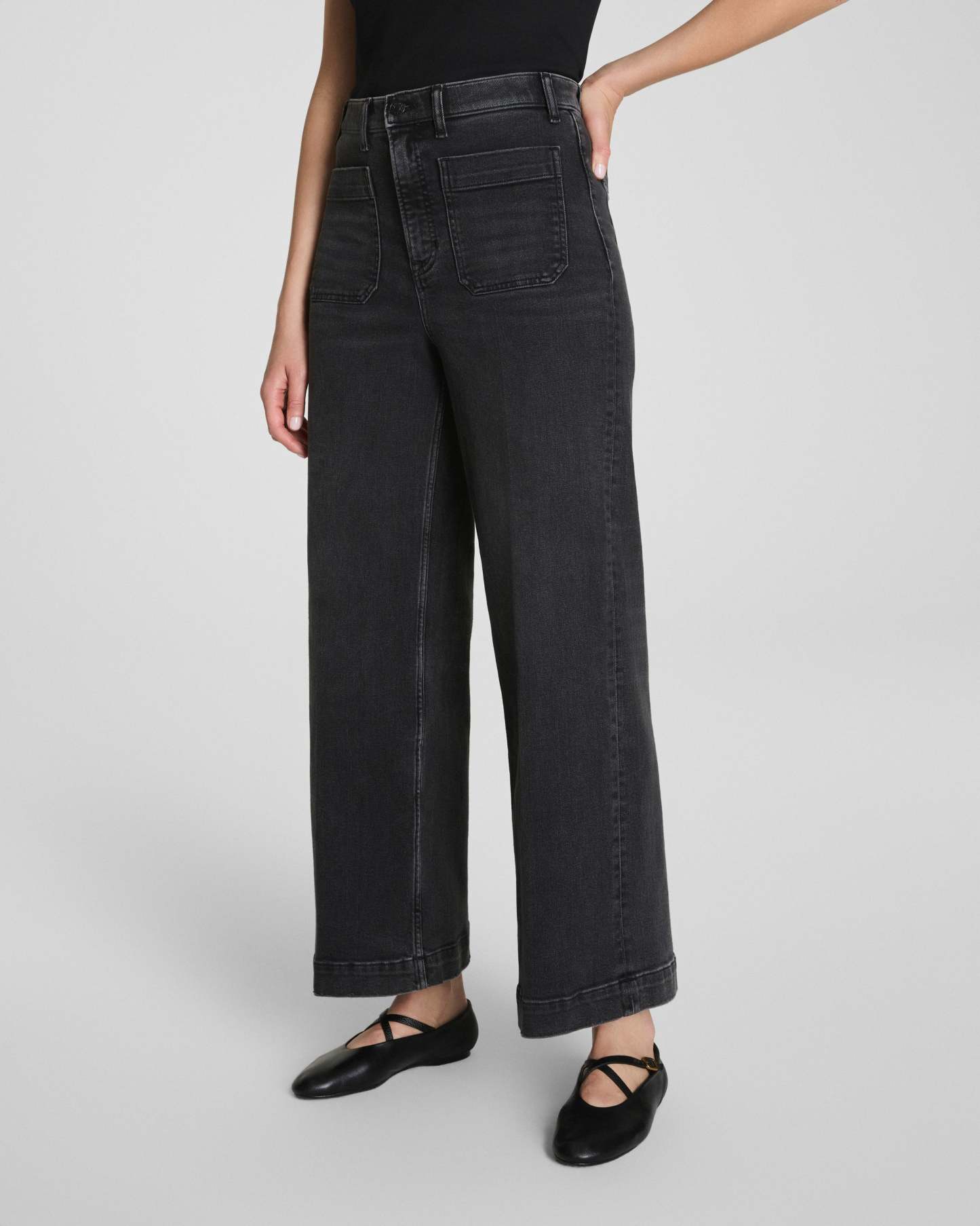 Patch Pockets Cropped Wide Leg Jeans (Buy 2 Free Shipping)