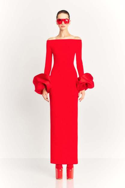 This pure-color long dress is a refined autumn-winter essential. Designed with long lantern sleeves. a concealed back zipper. and a back slit. it blends elegance with ease for a flattering fit.