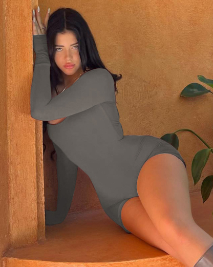 Long-Sleeved U-Neck High-Waisted Hip-Lifting Sports Yoga Jumpsuit