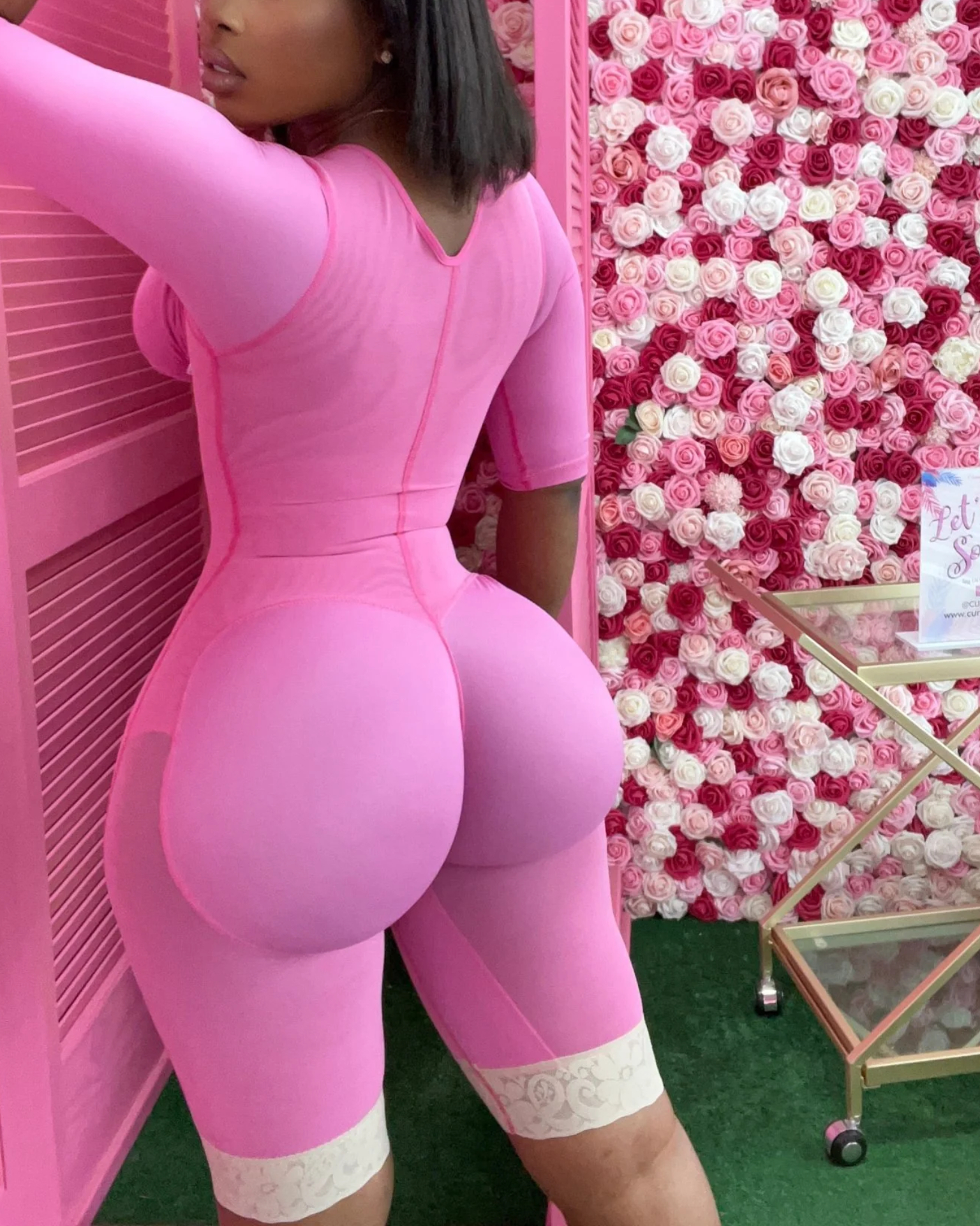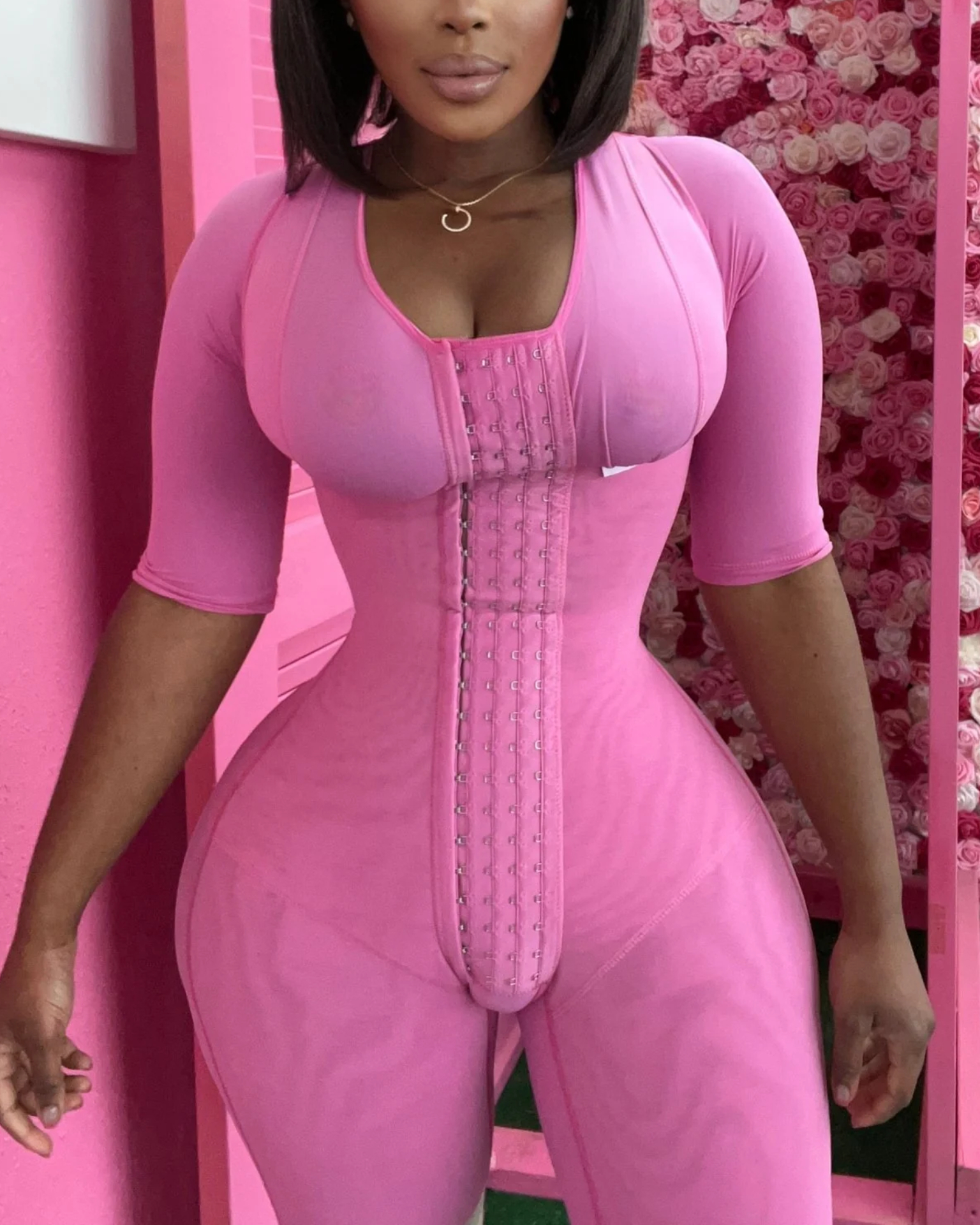 Short Sleeves Hook & Eye Front Slimming Fitness Bodysuit