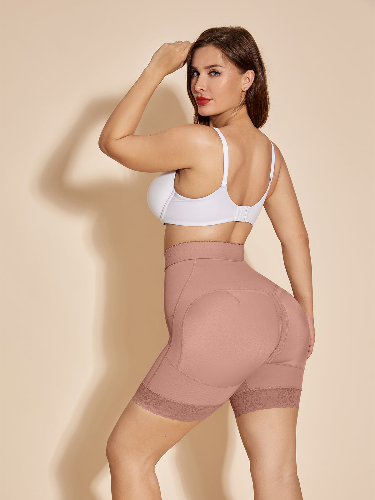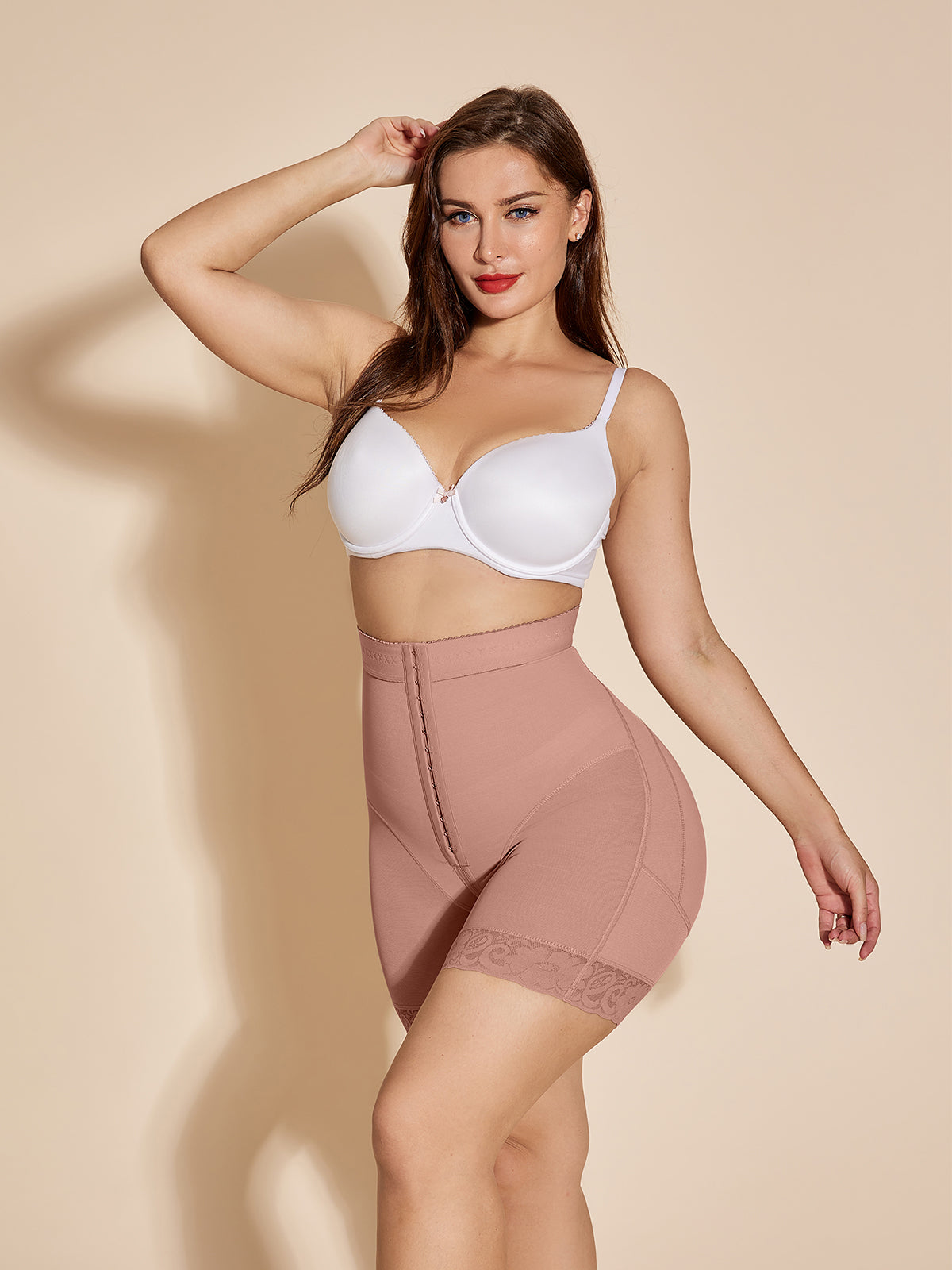 High Waist Women Booty Lifter Bodysuit Thigh Control Shorts - RosyBrown