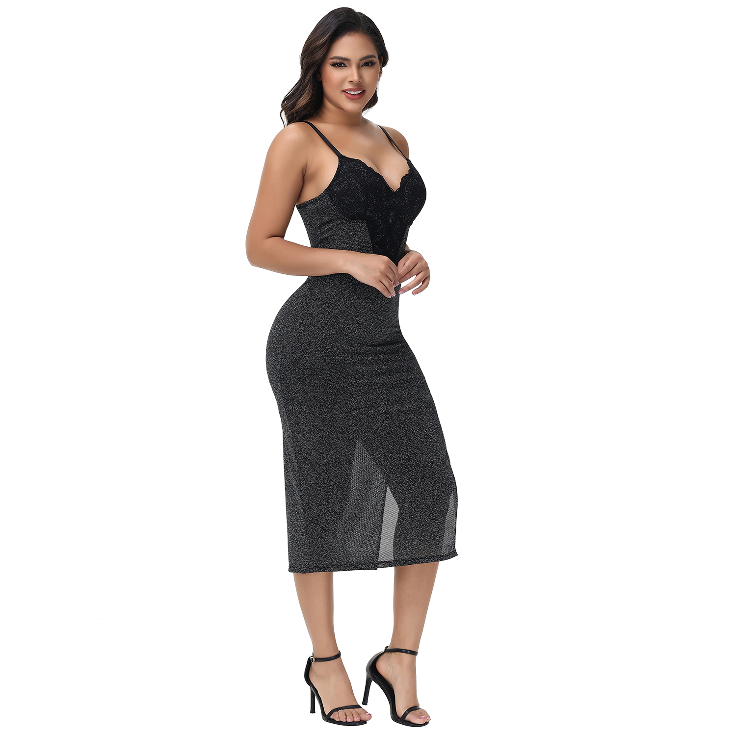 Shapewear Lace Hourglass Body Shaper Side Slit Dress