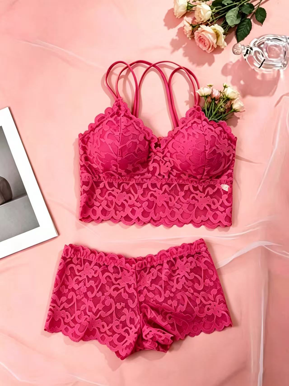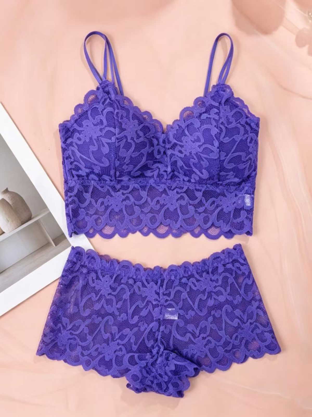 Lace Trimmed Wire Free Bra And Panty Two Piece Set