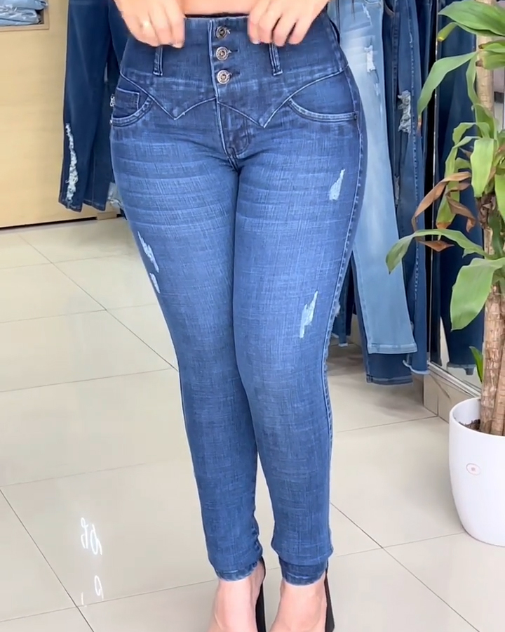 Mid Waist Skinny Buttocks Lifting Jeans