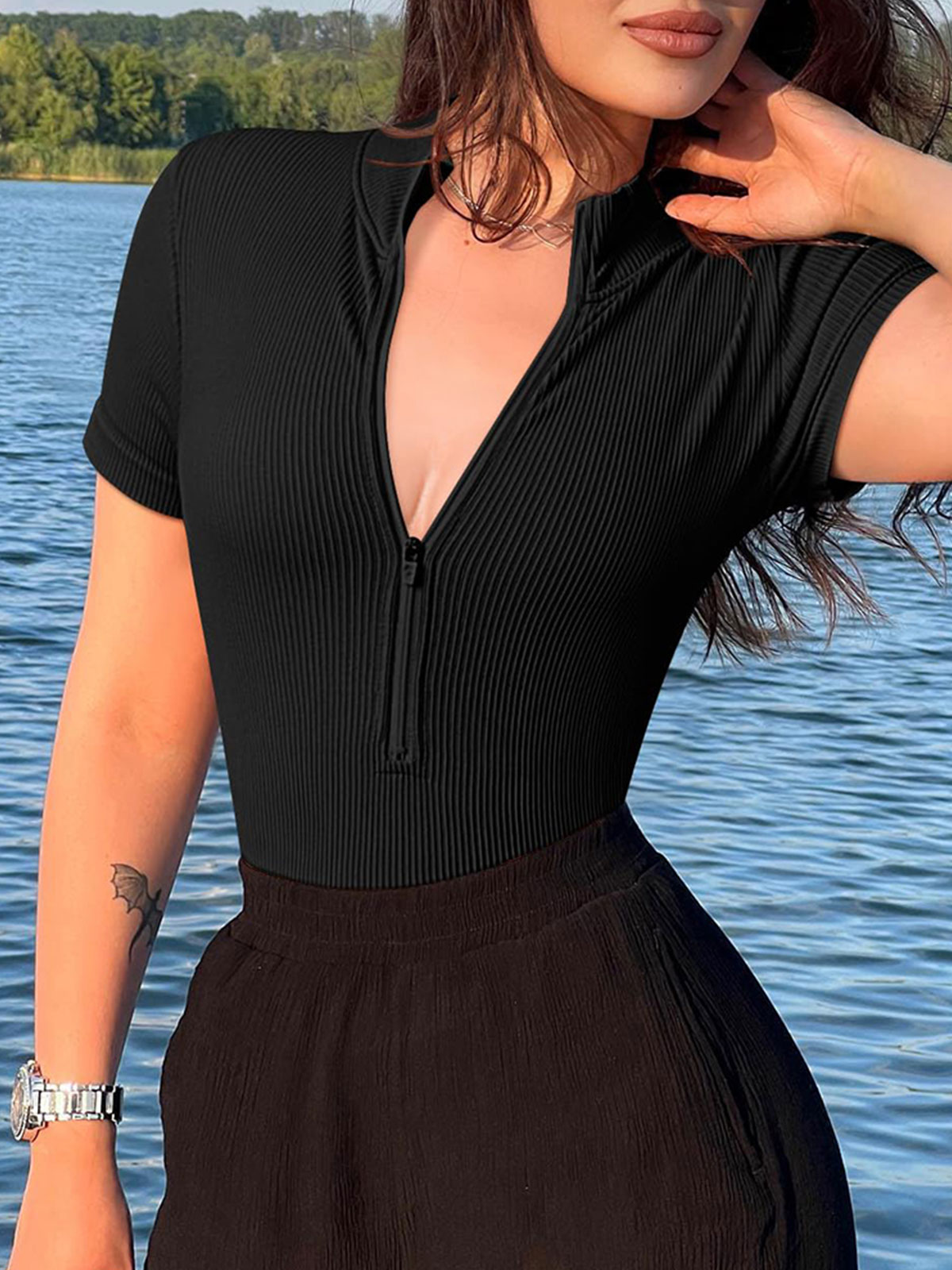 Trendy Classics: Zip neck body suit design for a trendy look, slender arm lines show your confidence and elegance. Bodysuit shirts you'll be reaching for all season.