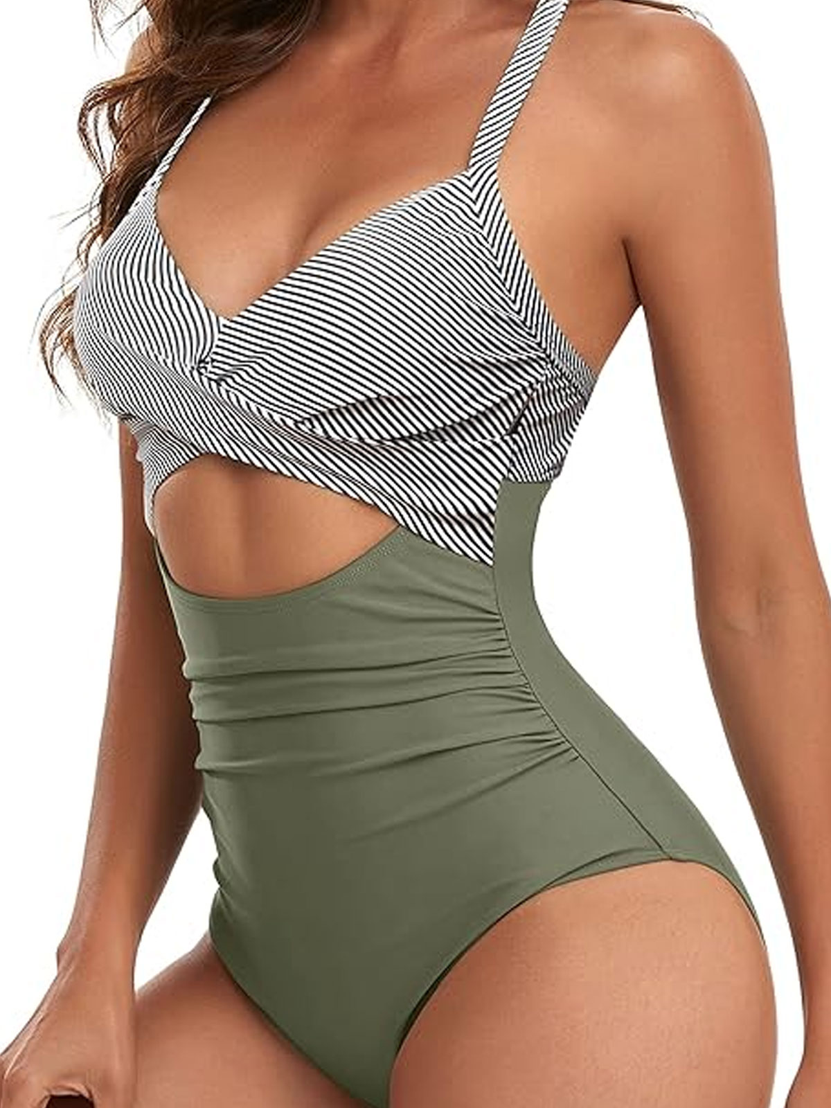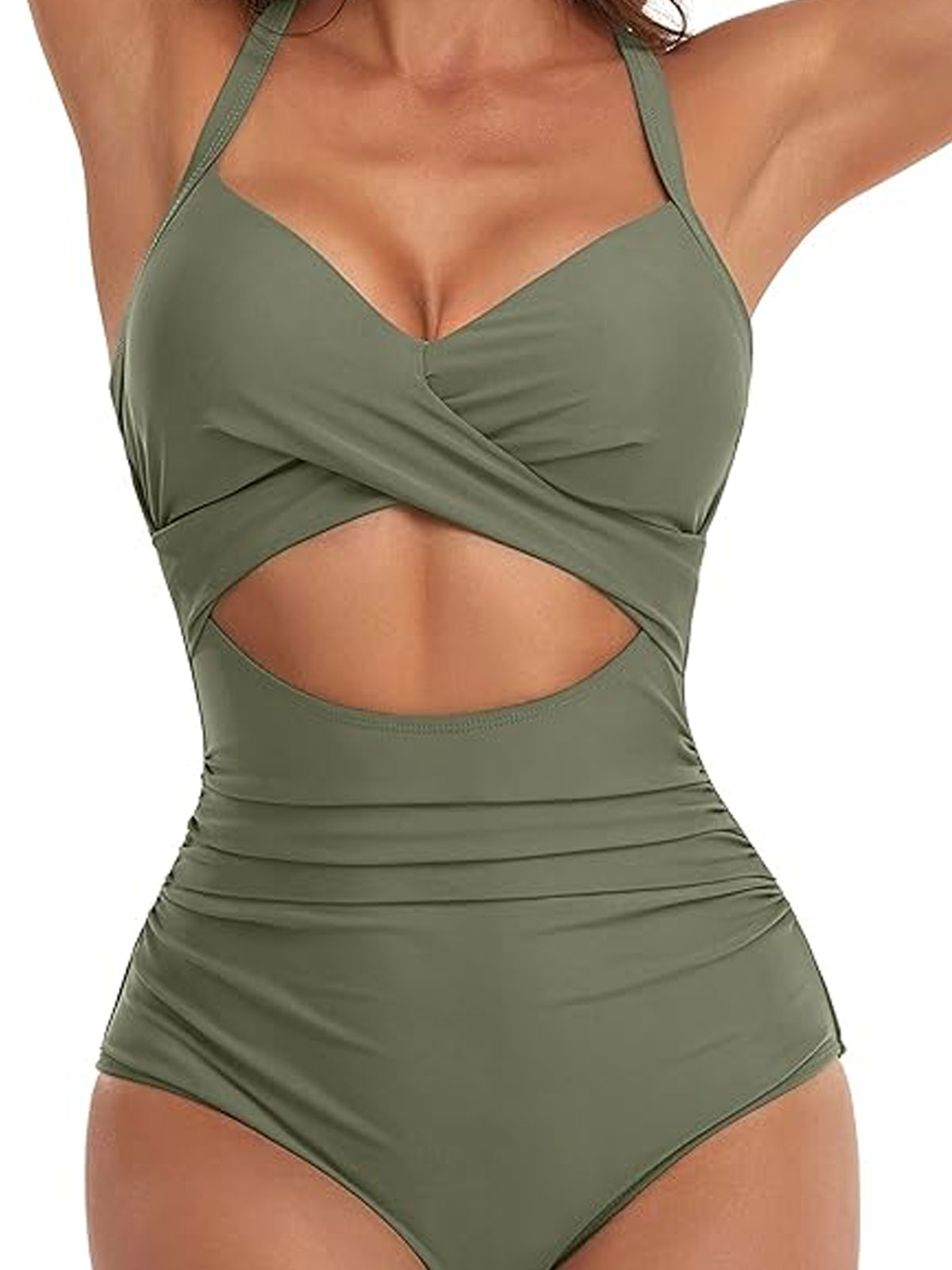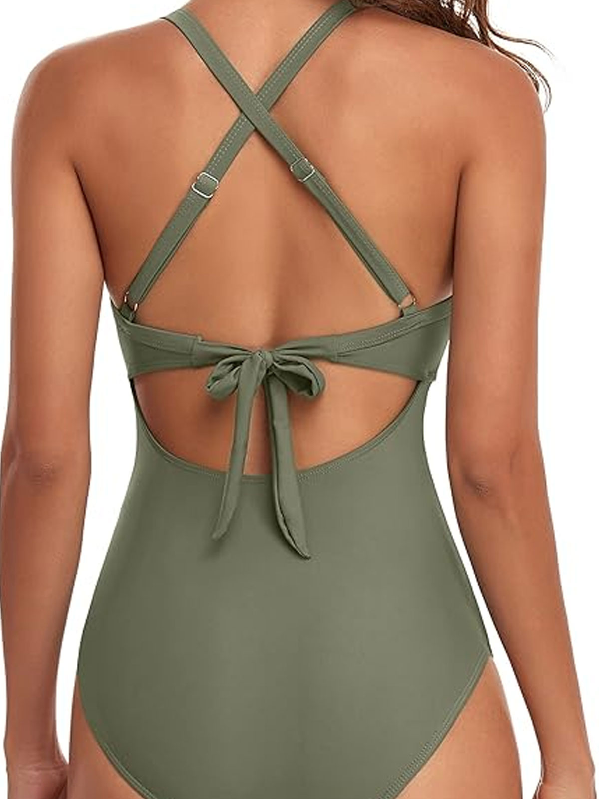 One Piece Swimsuits Tummy Control Cutout High Waisted Bathing Suit Wrap Tie Back