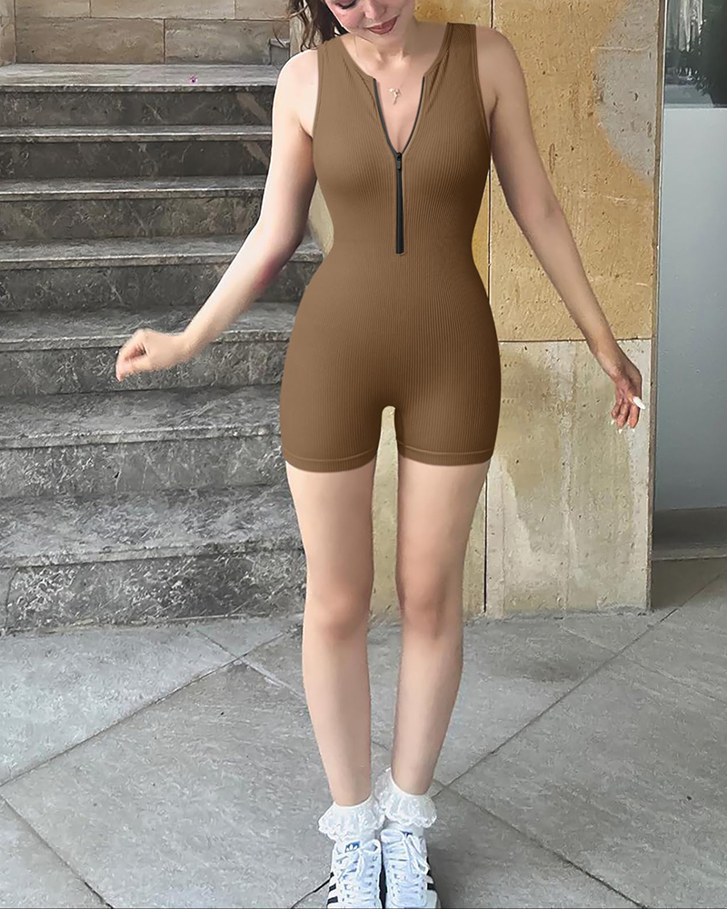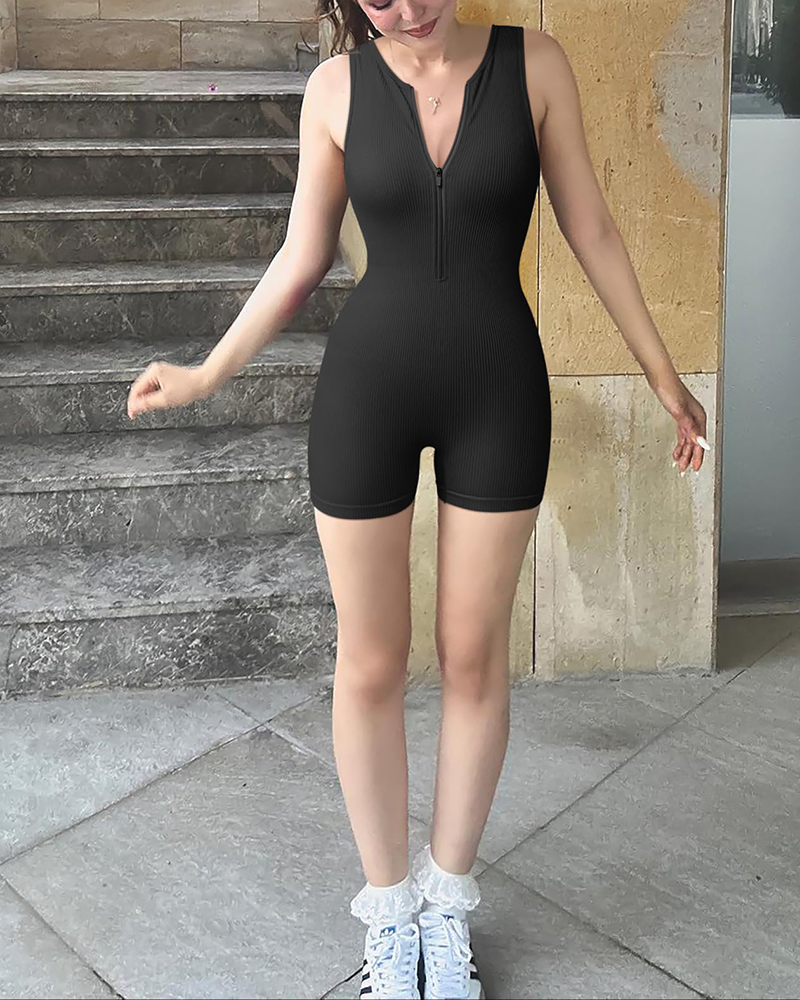 Sleeveless Zippered Ribbed Jumpsuit