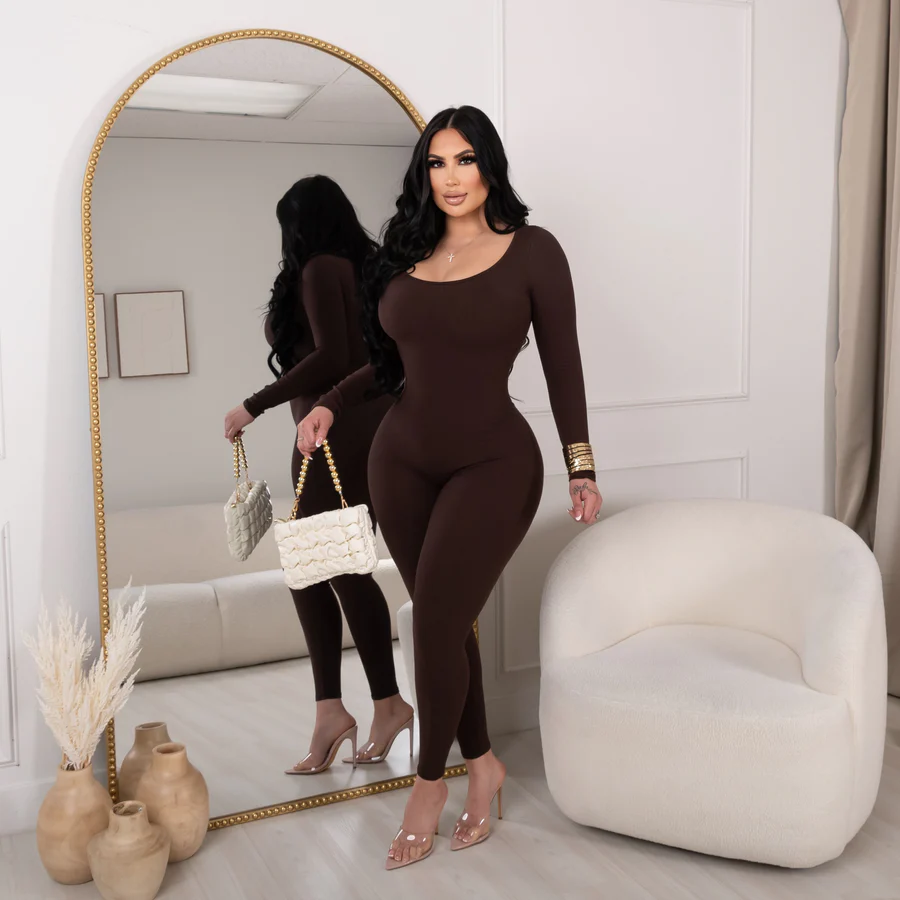 Long Sleeve Round Neck Bodysuit Snatched Jumpsuit