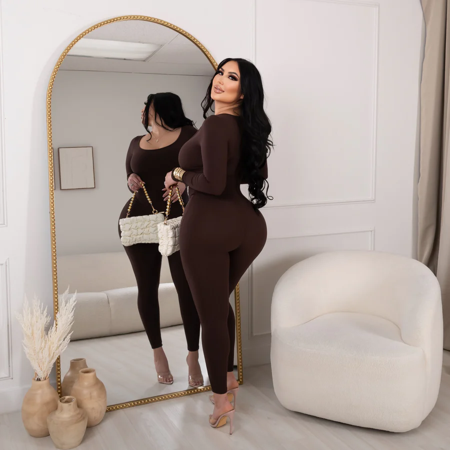 Long-Sleeve Round Neck Bodysuit Snatched Jumpsuit, the ultimate fusion of style and comfort. This jumpsuit is designed to flatter your figure and make a bold fashion statement. The long sleeves provide a touch of sophistication, while the round neck adds a classic and versatile touch. Crafted with high-quality materials, this jumpsuit offers a snug and body-hugging fit, accentuating your curves in all the right places. Whether you're dressing up for a night out or keeping it casual, this bodysuit jumpsuit is the perfect choice. Embrace your confidence and embrace the snatched look with our Long Sleeve Round Neck Bodysuit Snatched Jumpsuit.