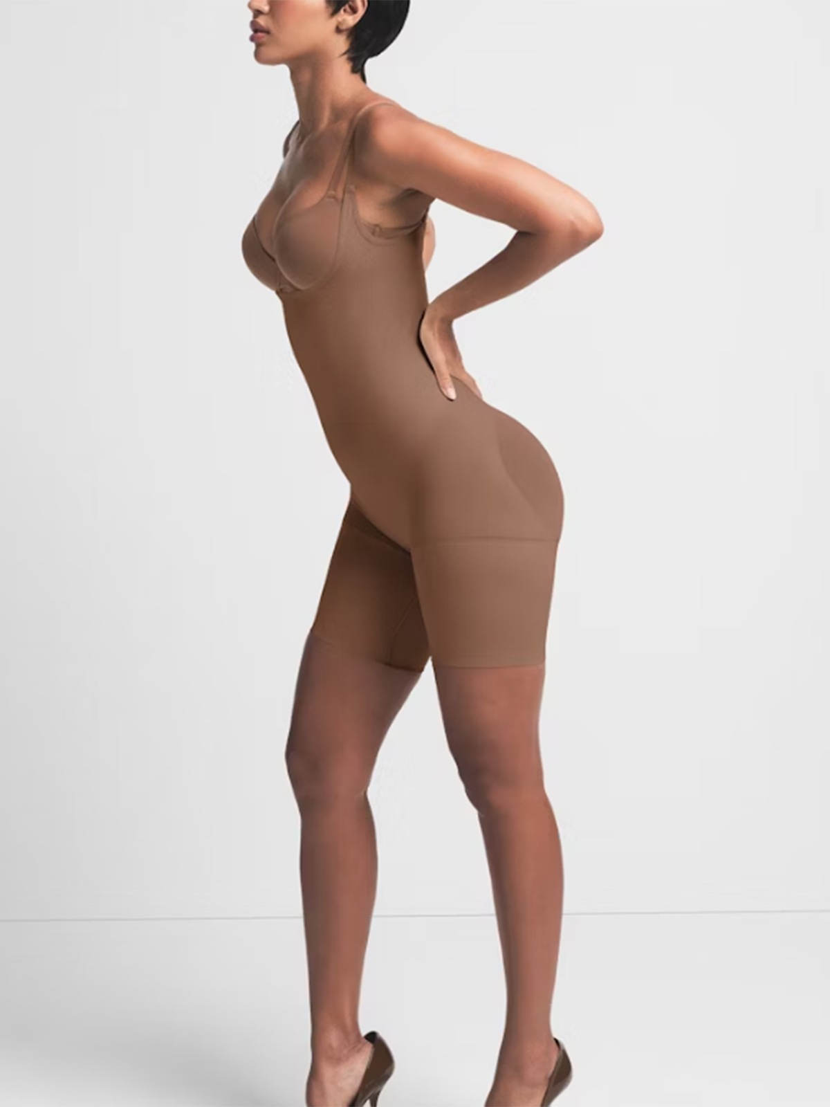 Summer Breathable Spaghetti Strap Seamless Shaping Hip Lifting Open Bust Bodysuit