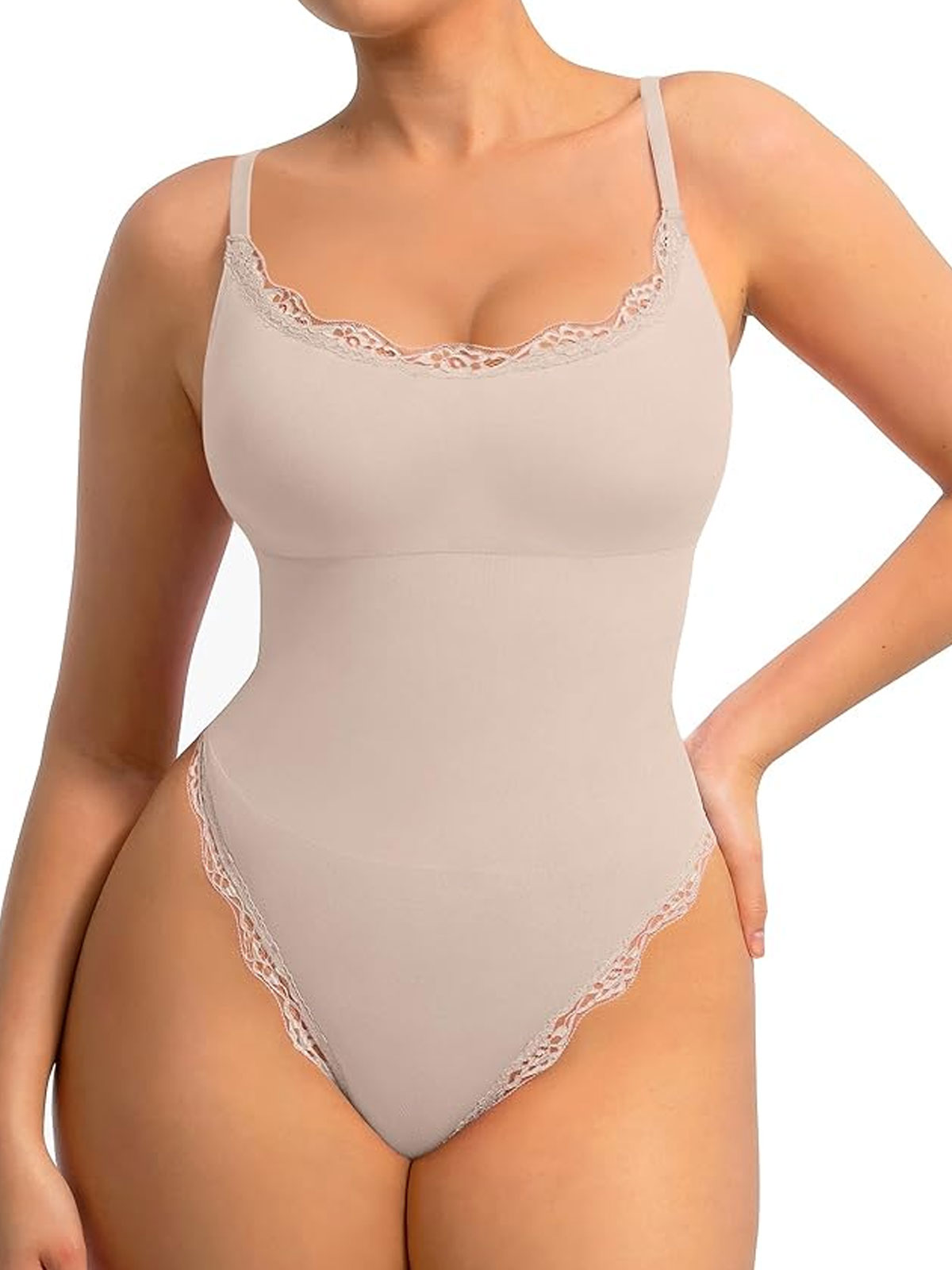 Tummy Control Thong Cami Bodysuit Tops with Adjustable Spaghetti Straps