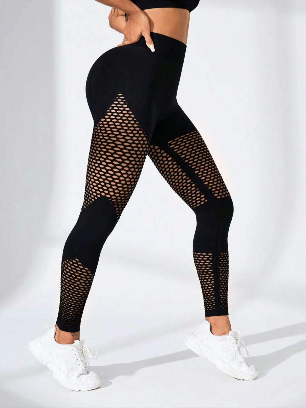 Women's Solid Color Hollow High Waist Sports Leggings