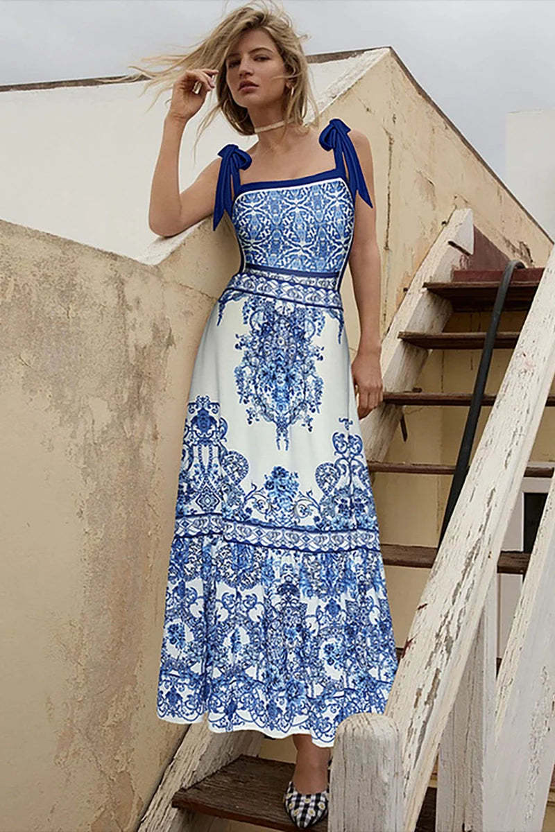 This blue boho print one-piece swimsuit set features delicate bow tie shoulder straps and an intricate ethnic-inspired pattern that brings a relaxed. free-spirited vibe to your beachwear. The soft blue tones and detailed print evoke a sense of wanderlust. while the adjustable ties add a touch of charm and a customizable fit. Crafted from high-quality stretch fabric. the swimsuit hugs the body comfortably and flatters your shape. making it both stylish and easy to wear for any warm-weather escape.