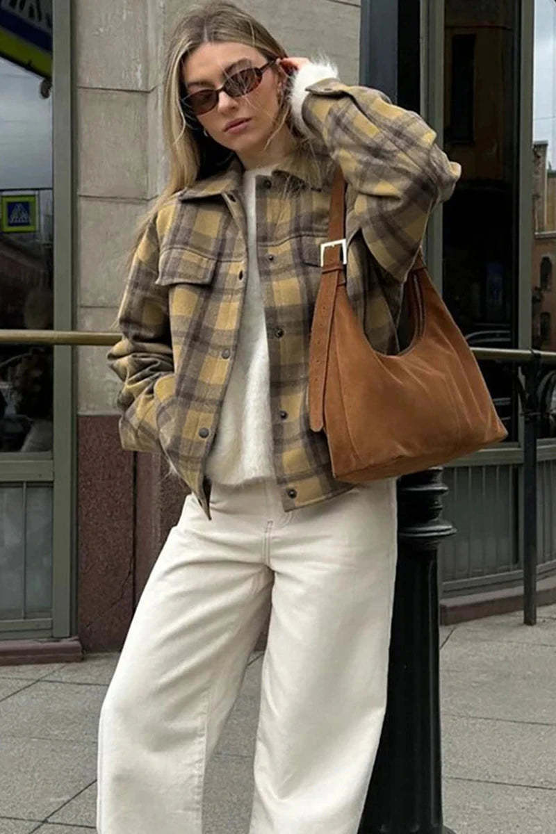 Embrace classic style this autumn and winter with our Plaid Lapel Coat. designed for effortless elegance in daily social settings. Crafted from durable polyester. this coat features a conventional thickness that provides just the right amount of warmth without bulk. Its timeless plaid pattern and neutral tones make it a versatile addition to your wardrobe.