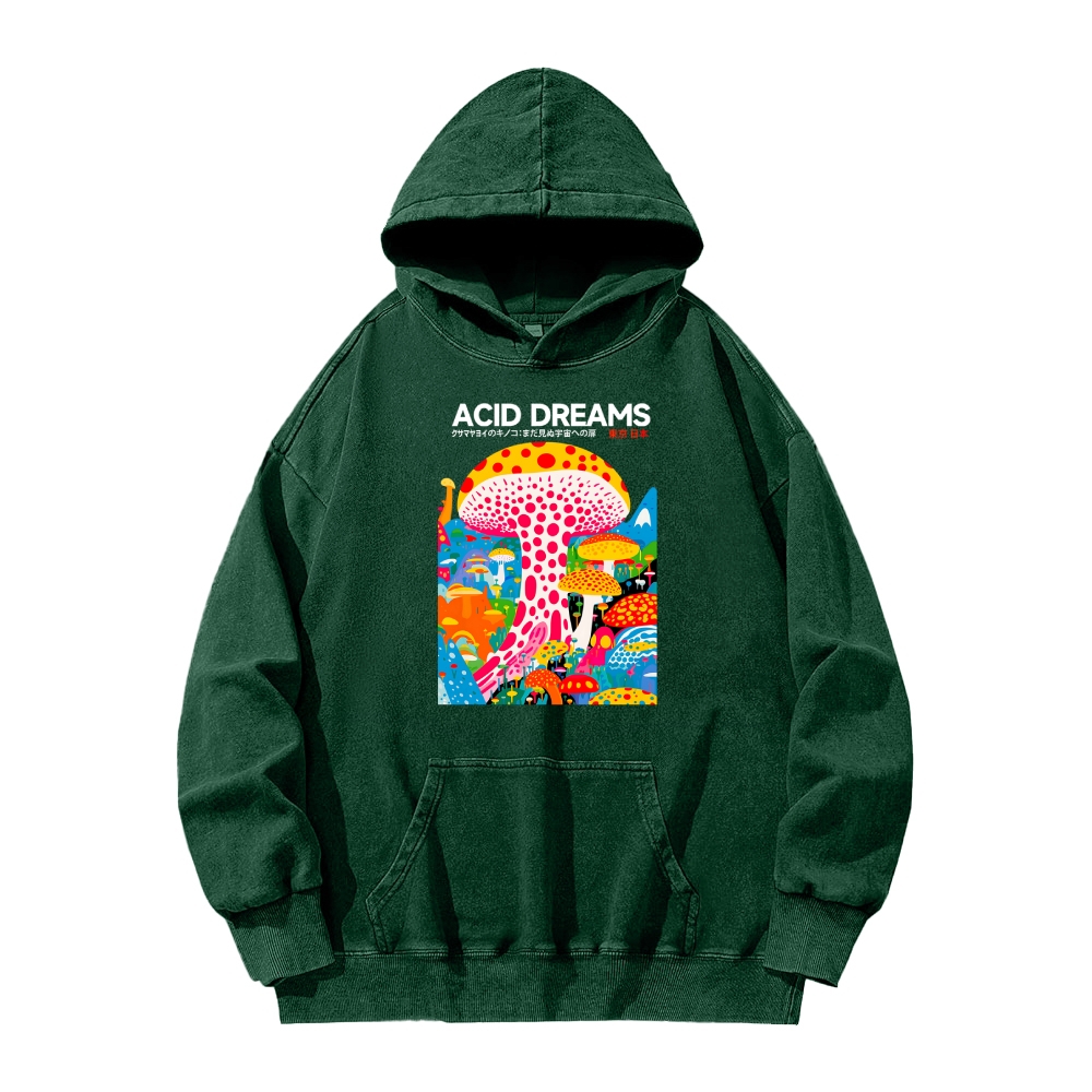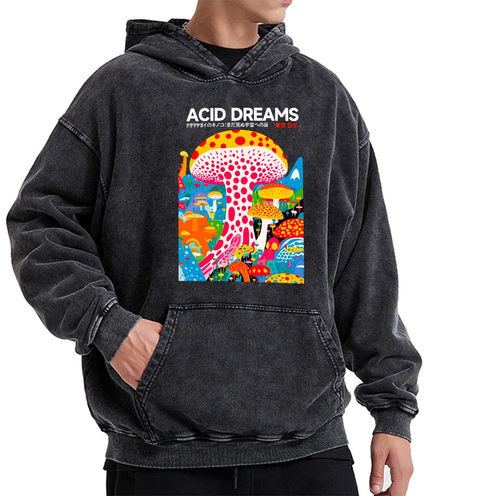 Japanese Acid Dreams Mushroom Vintage Washed Hoodie