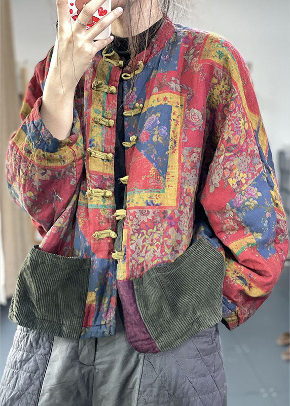 Vintage Red Pockets Button Print Fall Long sleeve Coat