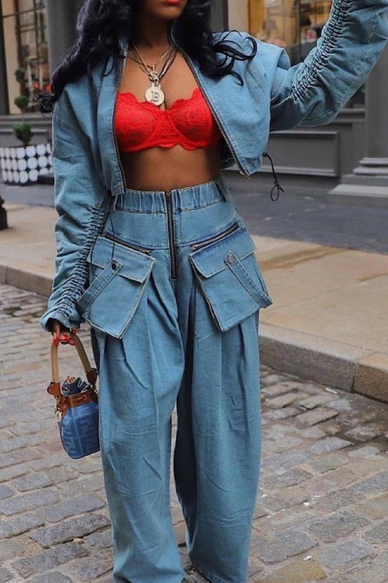This fashion-forward two-piece set combines retro charm with modern style. featuring wide-leg. relaxed-fit denim pants and a matching top. The heavy-duty denim construction offers durability. while the loose silhouette ensures comfort and movement. Perfect for creating an effortlessly chic look that embraces both comfort and style.