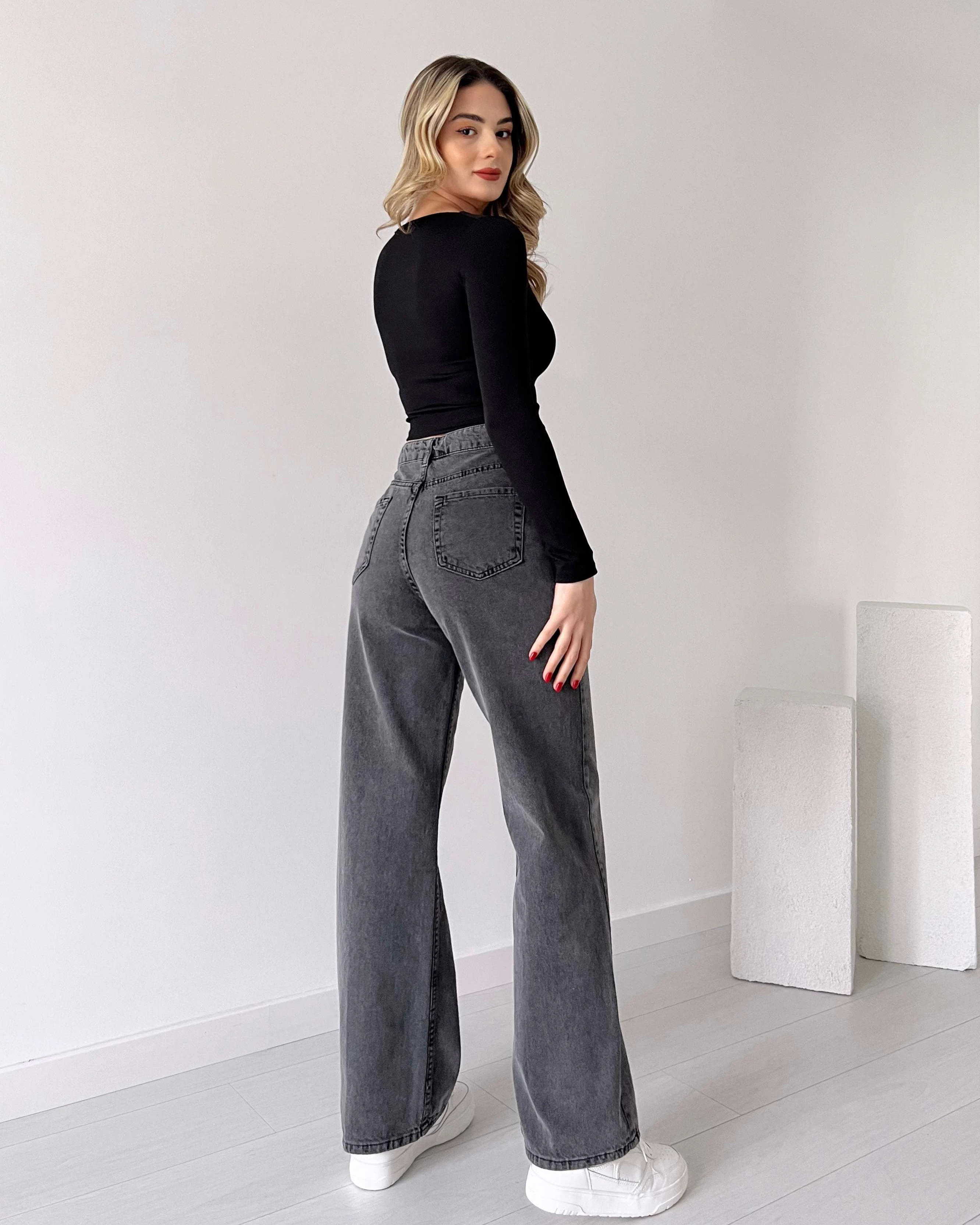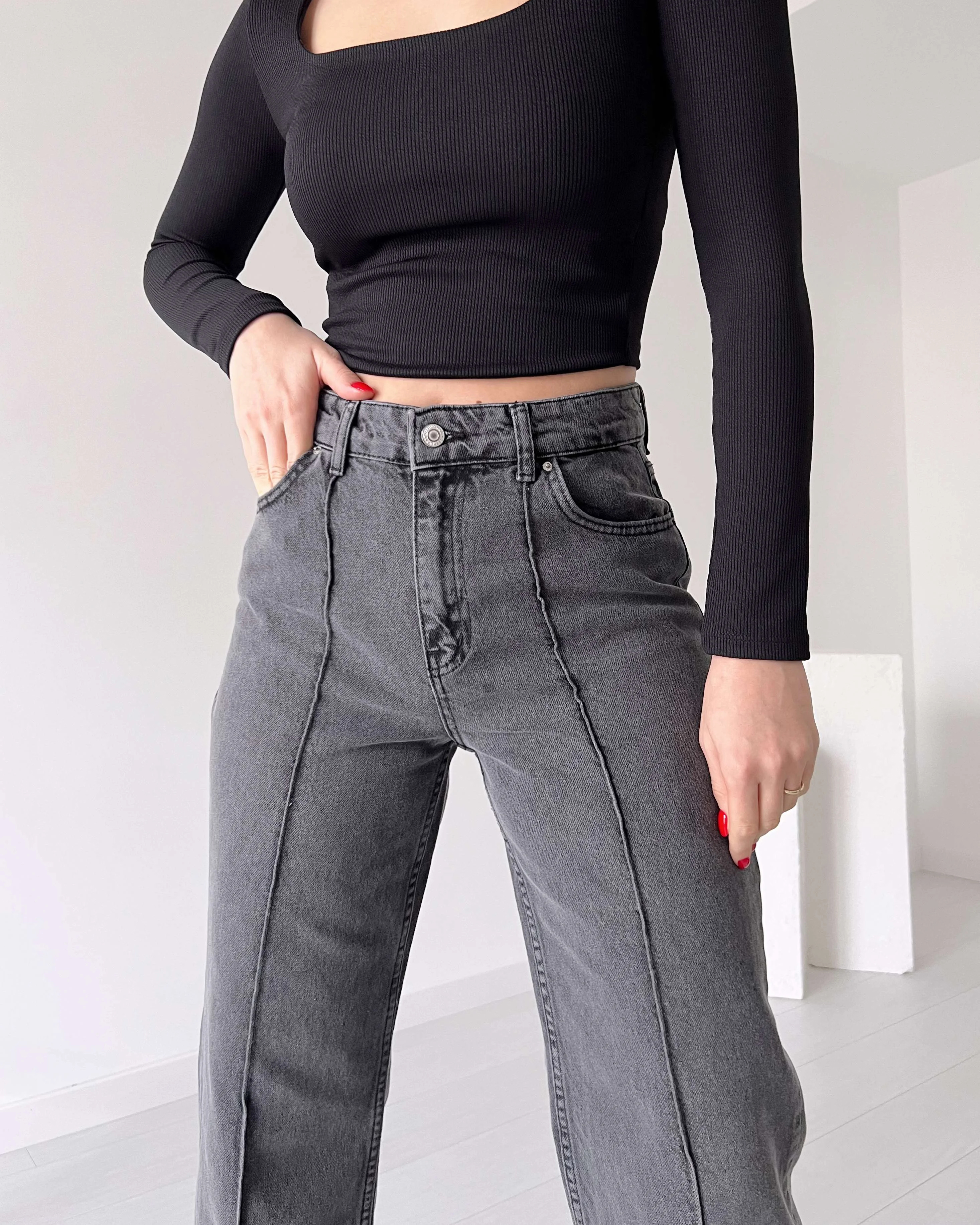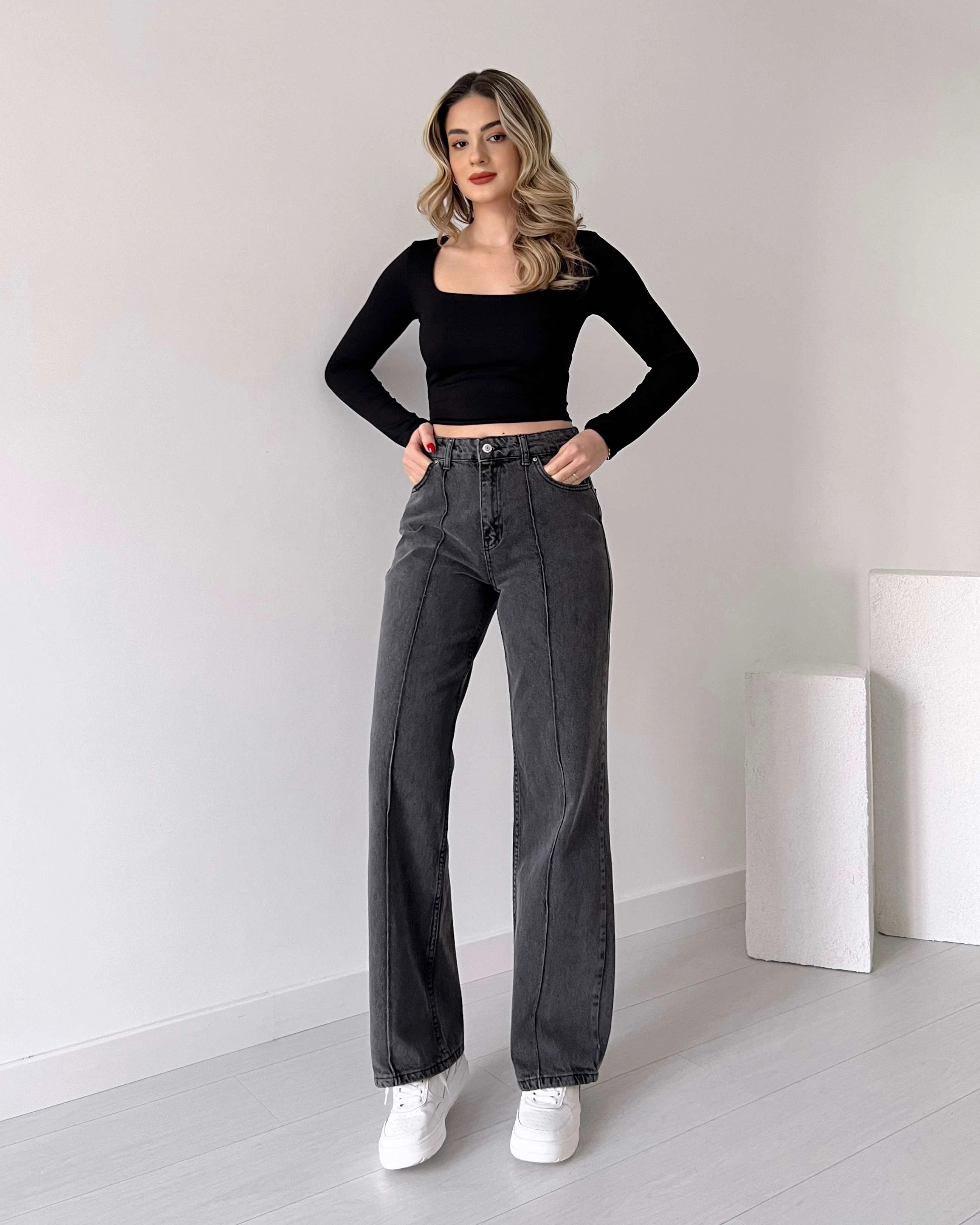 High Waisted Straight Leg Grey Jean