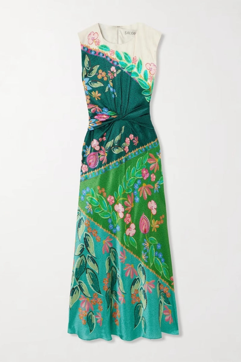 This dress is made of high-grade satin fabric. which feels smooth and soft. with a delicate luster that shows elegant texture. The unique twist design at the waist skillfully tightens the waist line. outlines a slim curve. and can also cover the fat in the waist and abdomen. with strong tolerance for body shapes. The bright printed pattern is vivid and eye-catching. It is capable and fashionable with a blazer for daily commuting. gentle and temperamental for girlfriend afternoon tea. and romantic and charming with high heels on dates. It easily fits various occasions such as commuting. leisure and dates. and unlocks multi-style looks with one piece.