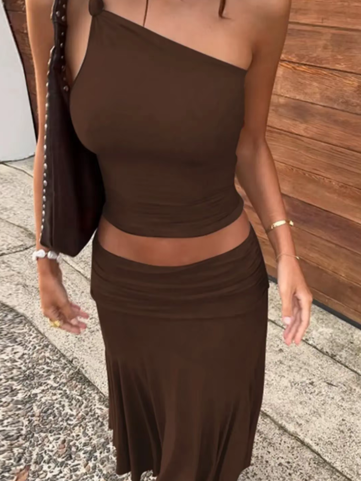 Solid Color Camisole And Skirt Two Piece Set