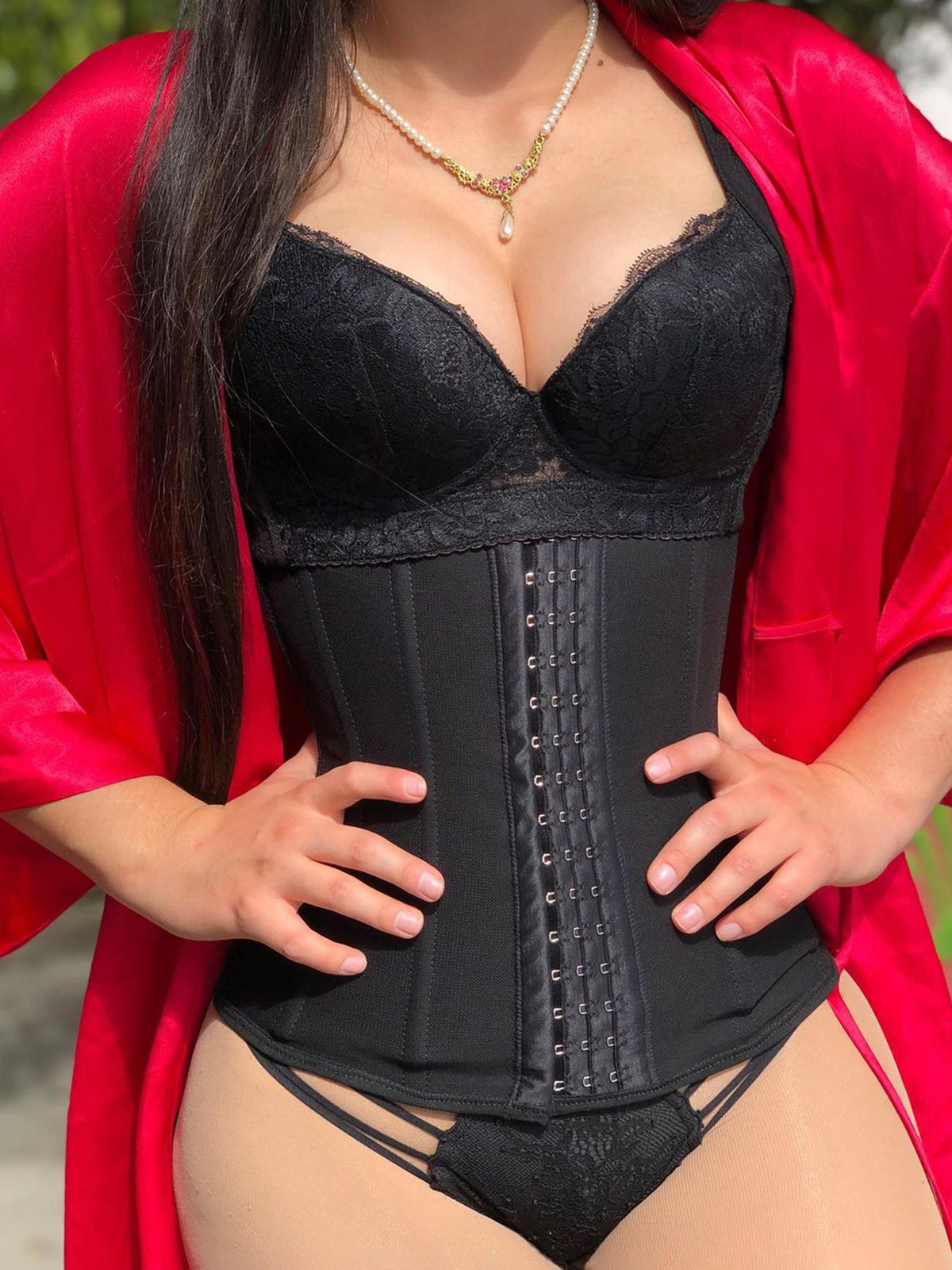 High Waist Butt Lifter Faja Lace Short - Black